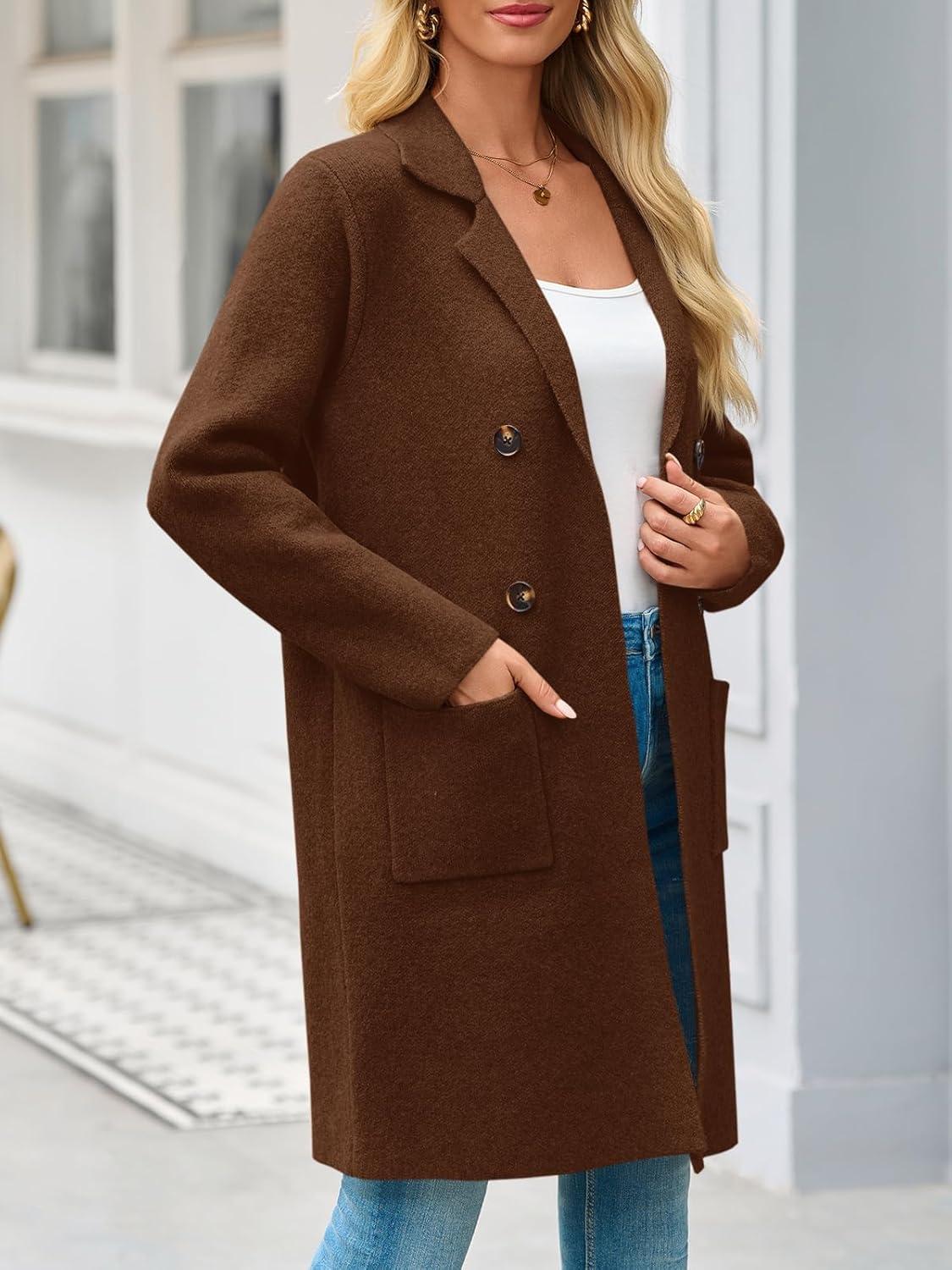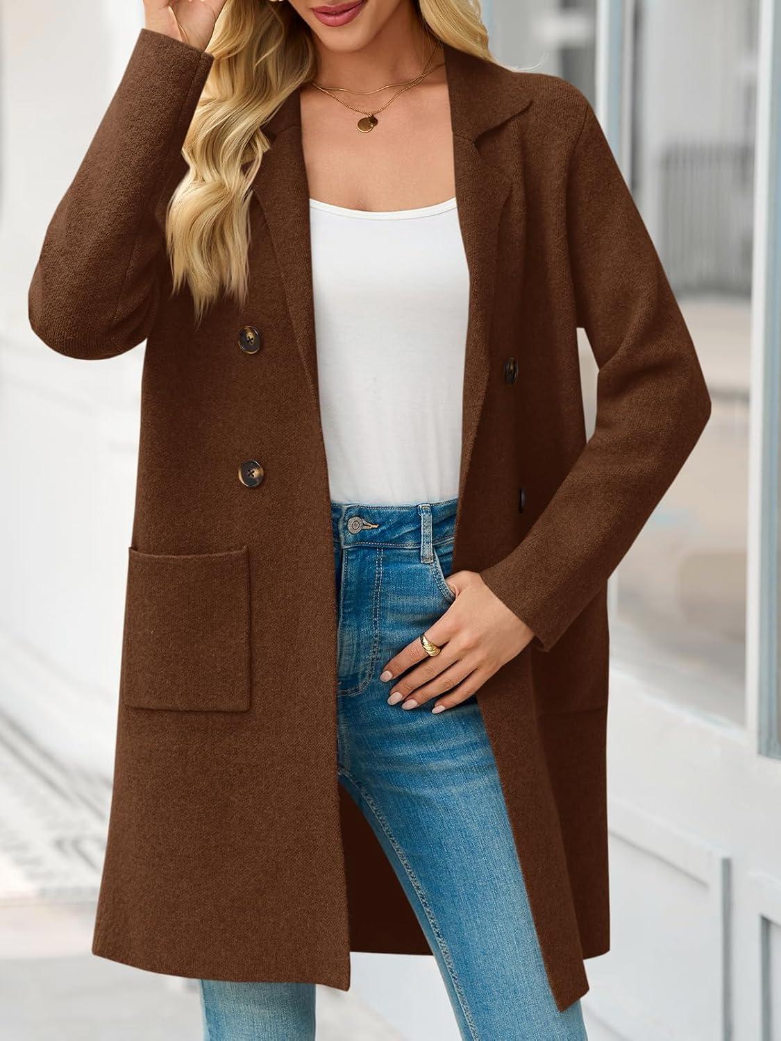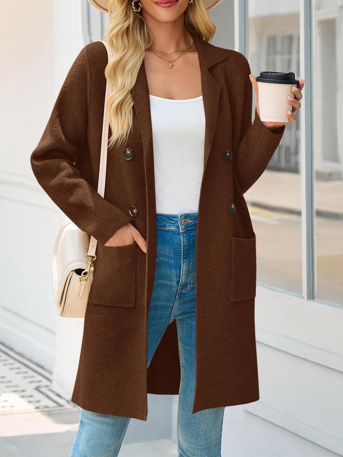 Saodimallsu Womens Long Cardigan Sweaters Open Front Knit Dressy Casual Chunky Lapel Coatigan Fall Sweater Blazer Coats(Coffee)
