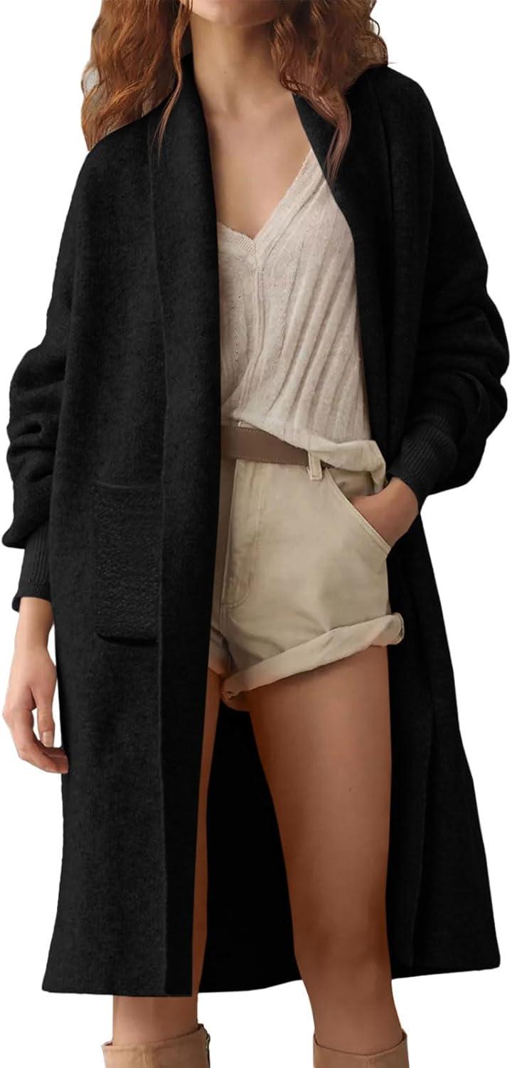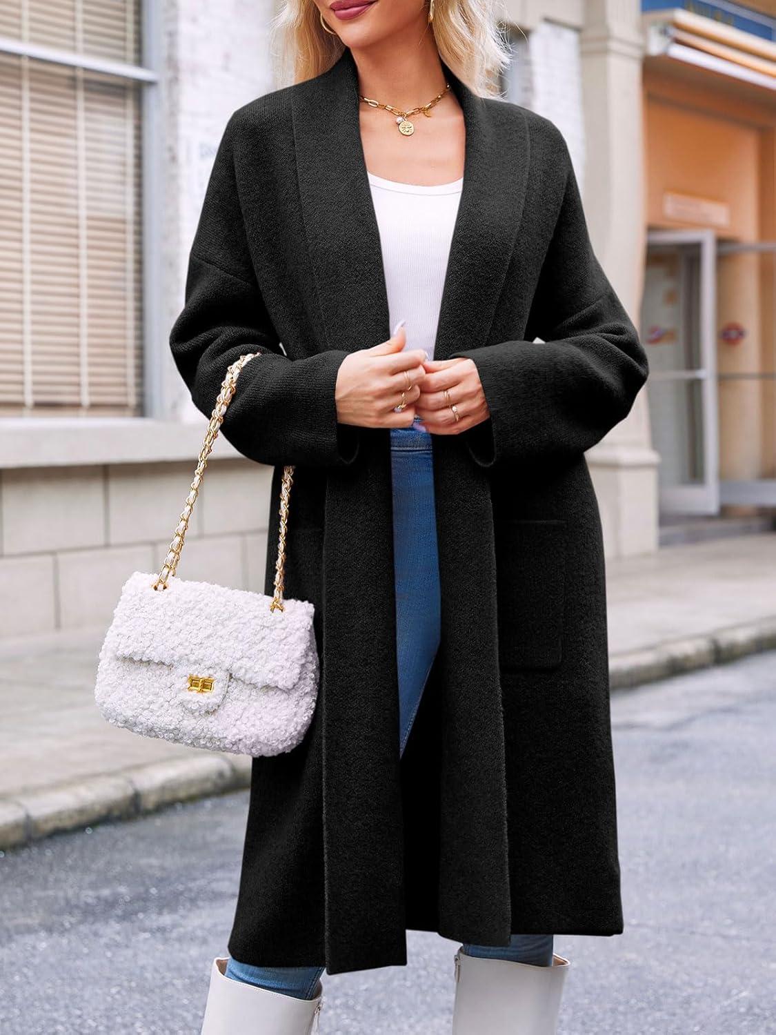 Saodimallsu Womens Long Cardigans Oversized Chunky Knit Coatigan Fall Trendy Open Front Sweater Jackets with Pockets(Black)
