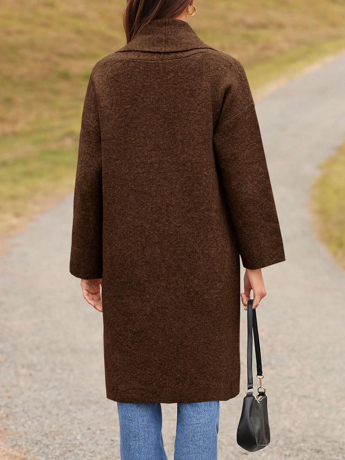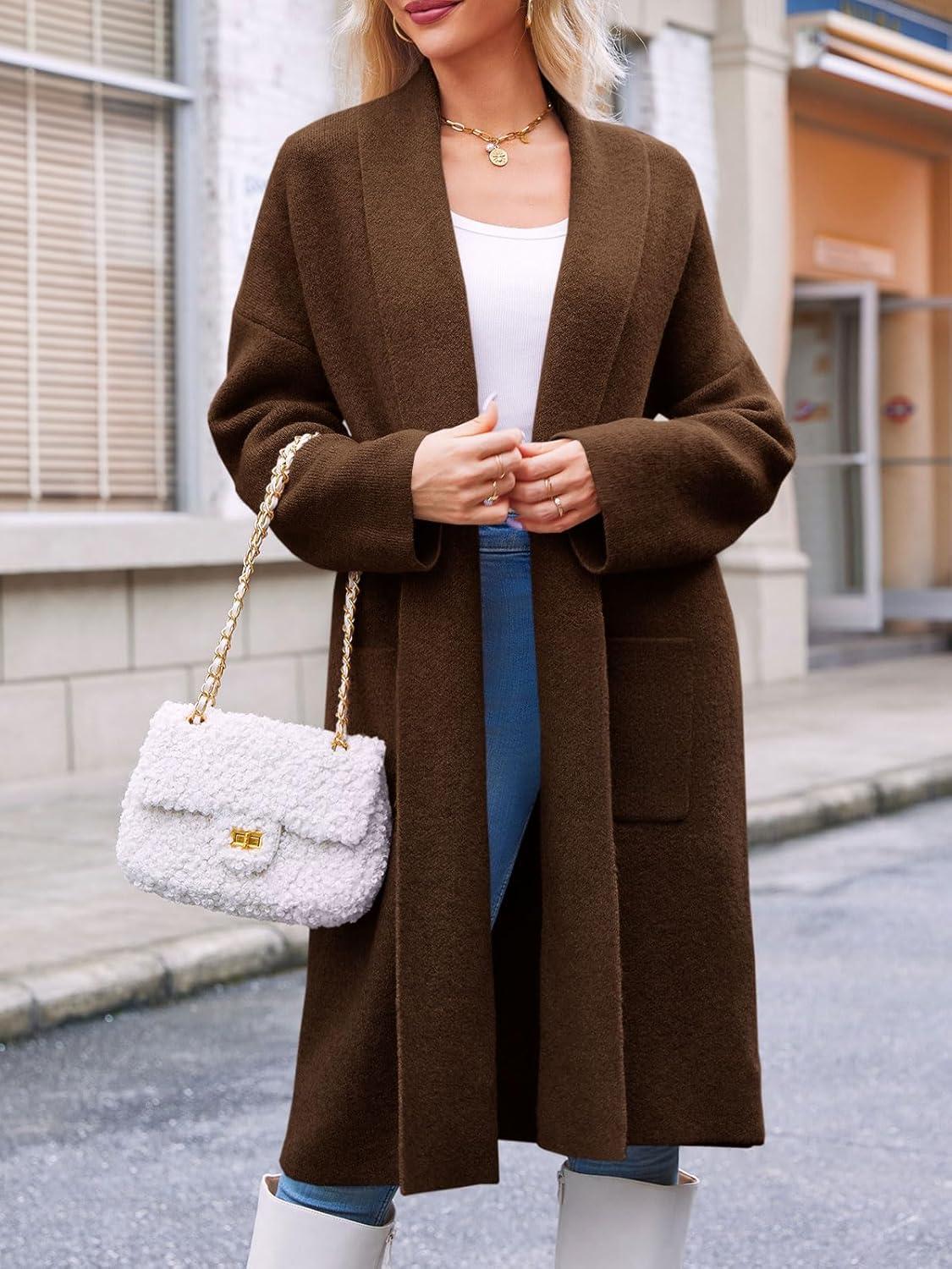 Saodimallsu Womens Long Cardigans Oversized Chunky Knit Coatigan Fall Trendy Open Front Sweater Jackets with Pockets(Brown)
