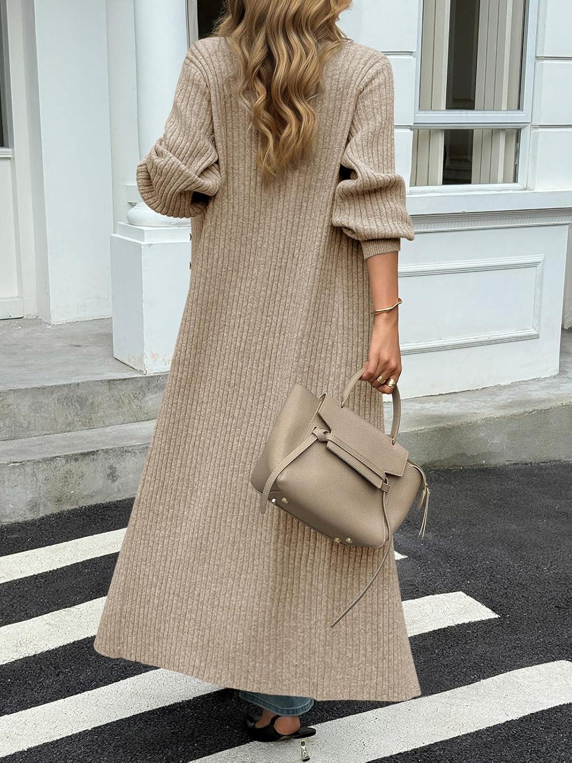 Saodimallsu Womens Long Cardigans V Neck Button Down Chunky Knit Dusters Sweater Coat Fall Trendy Maxi Sweater Dress(Apricot)