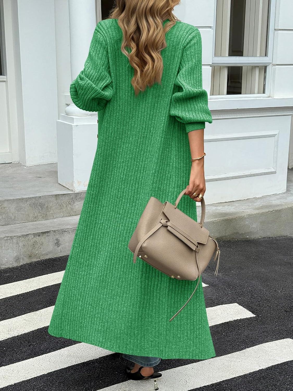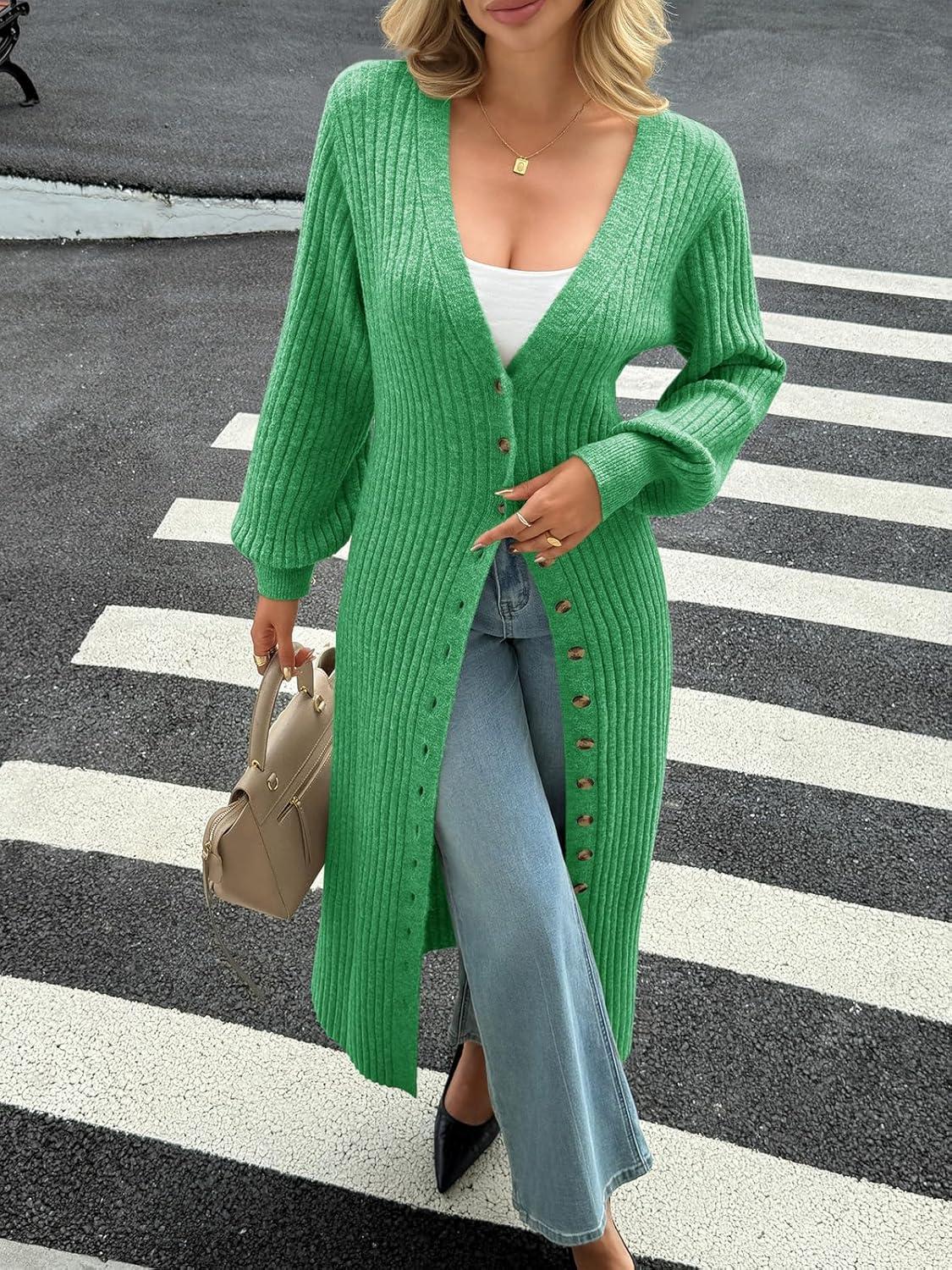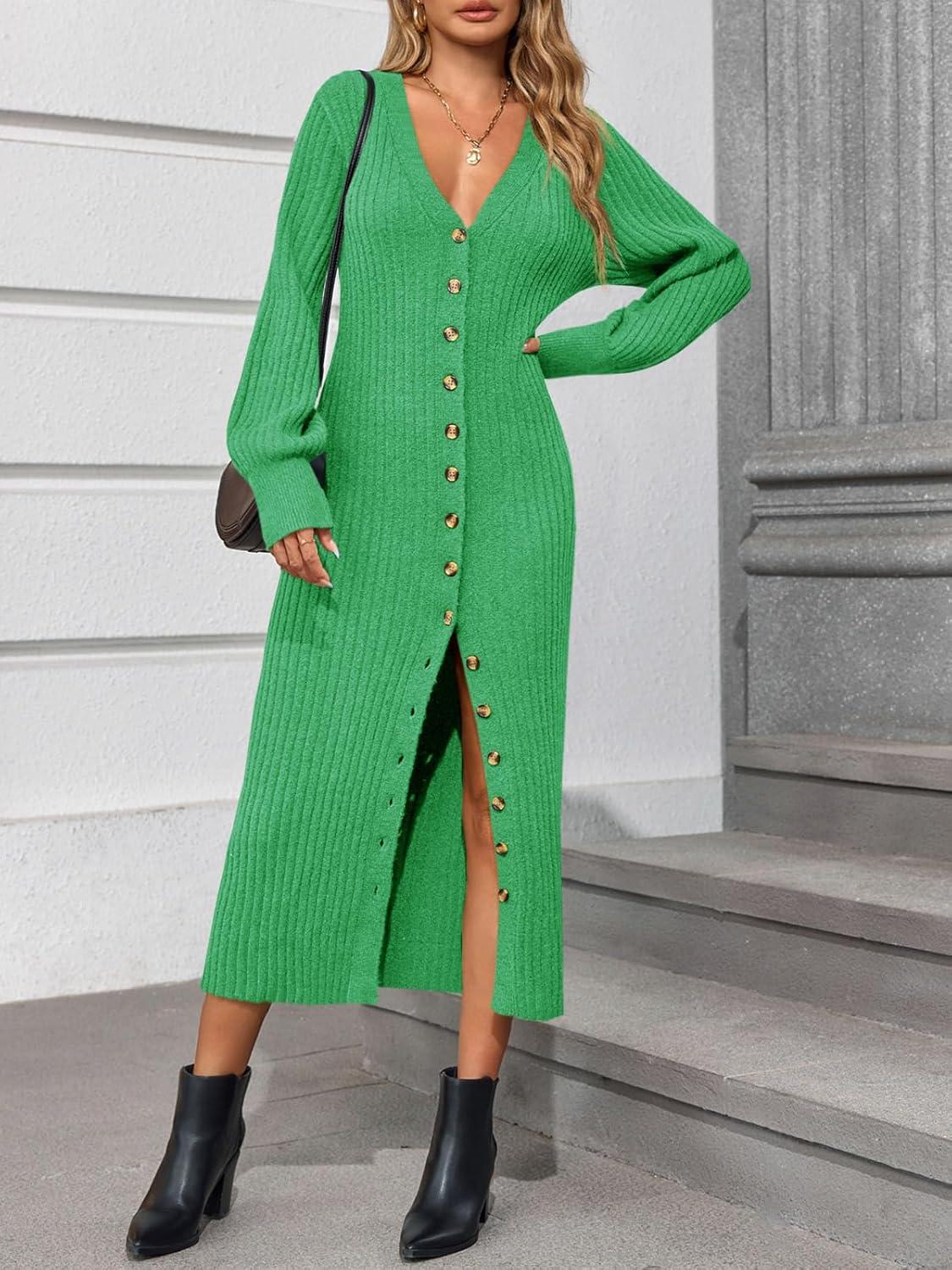 Saodimallsu Womens Long Cardigans V Neck Button Down Chunky Knit Dusters Sweater Coat Fall Trendy Maxi Sweater Dress(Green)