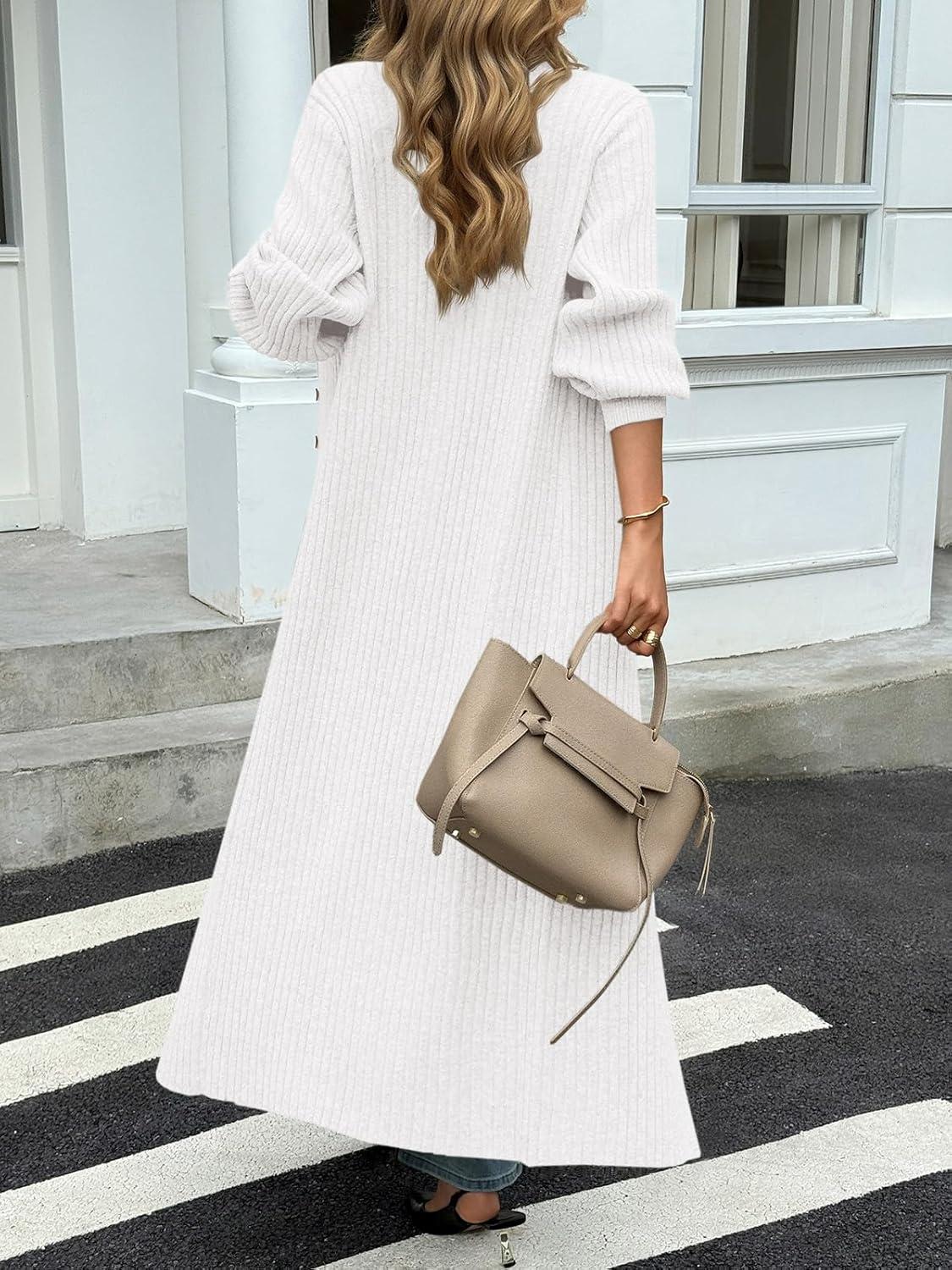 Saodimallsu Womens Long Cardigans V Neck Button Down Chunky Knit Dusters Sweater Coat Fall Trendy Maxi Sweater Dress(White)
