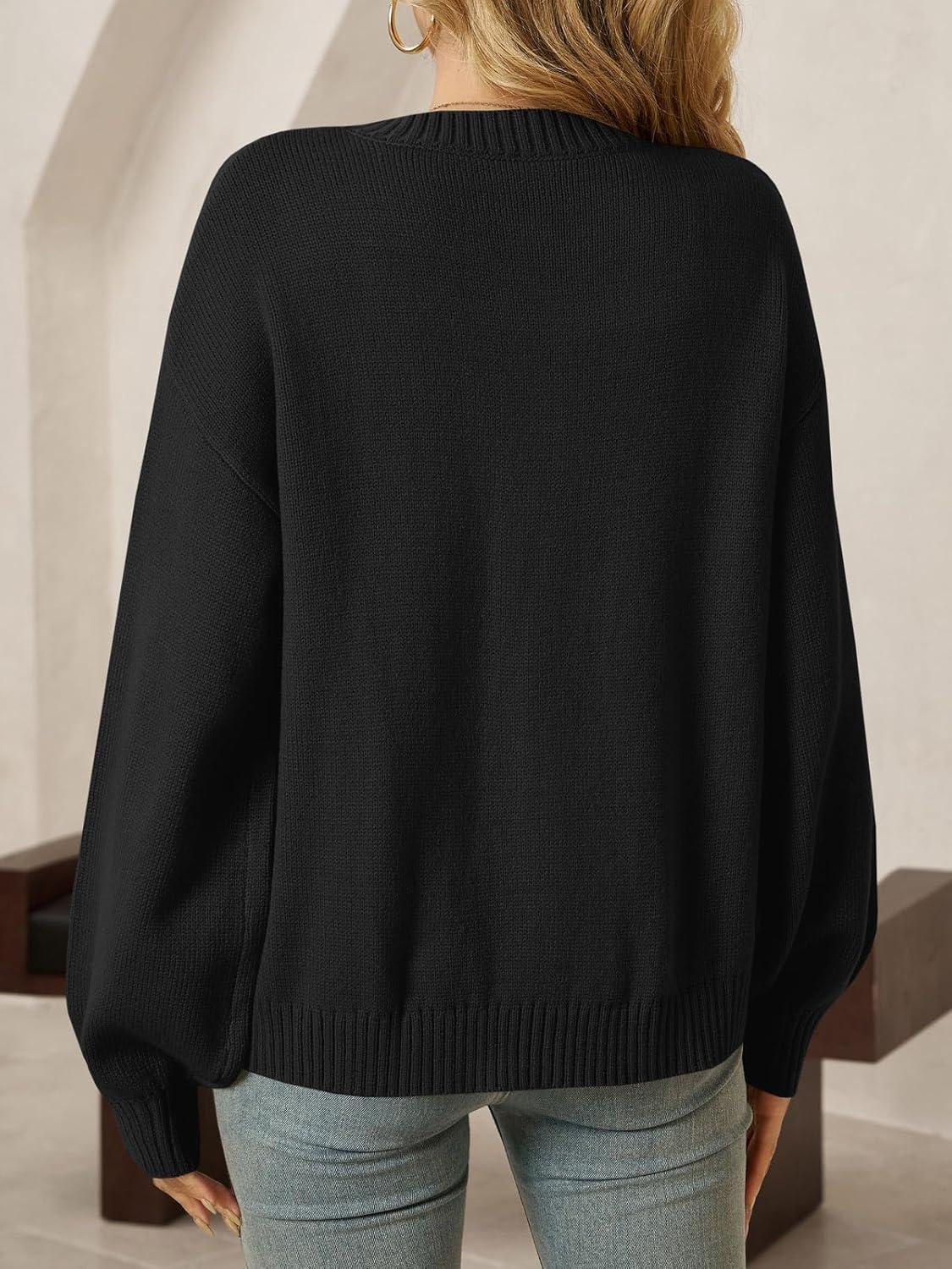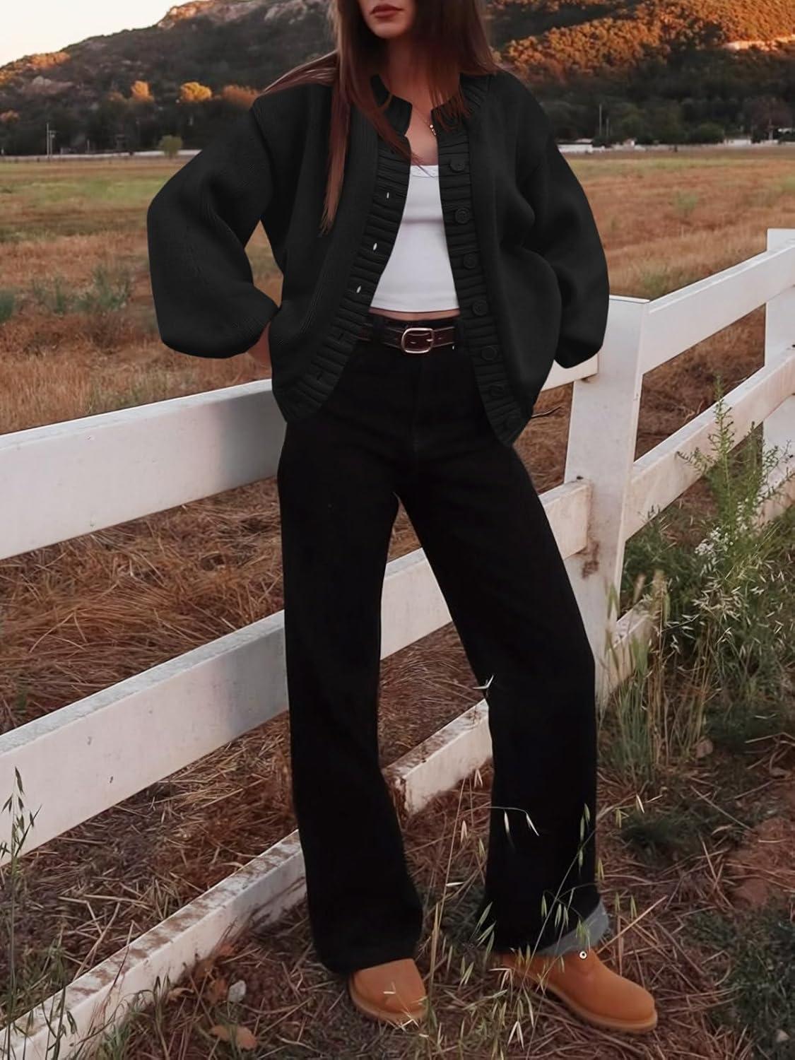Saodimallsu Womens Long Sleeve Button Down Cardigan Sweaters Crew Neck Open Front Knit Casual Loose Fit Fall Sweater Coat(Black)