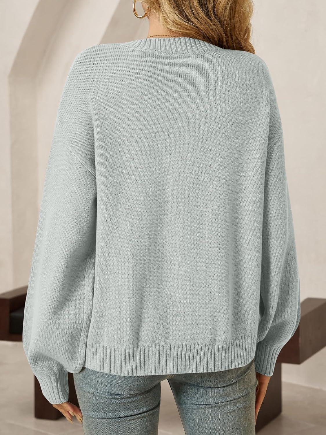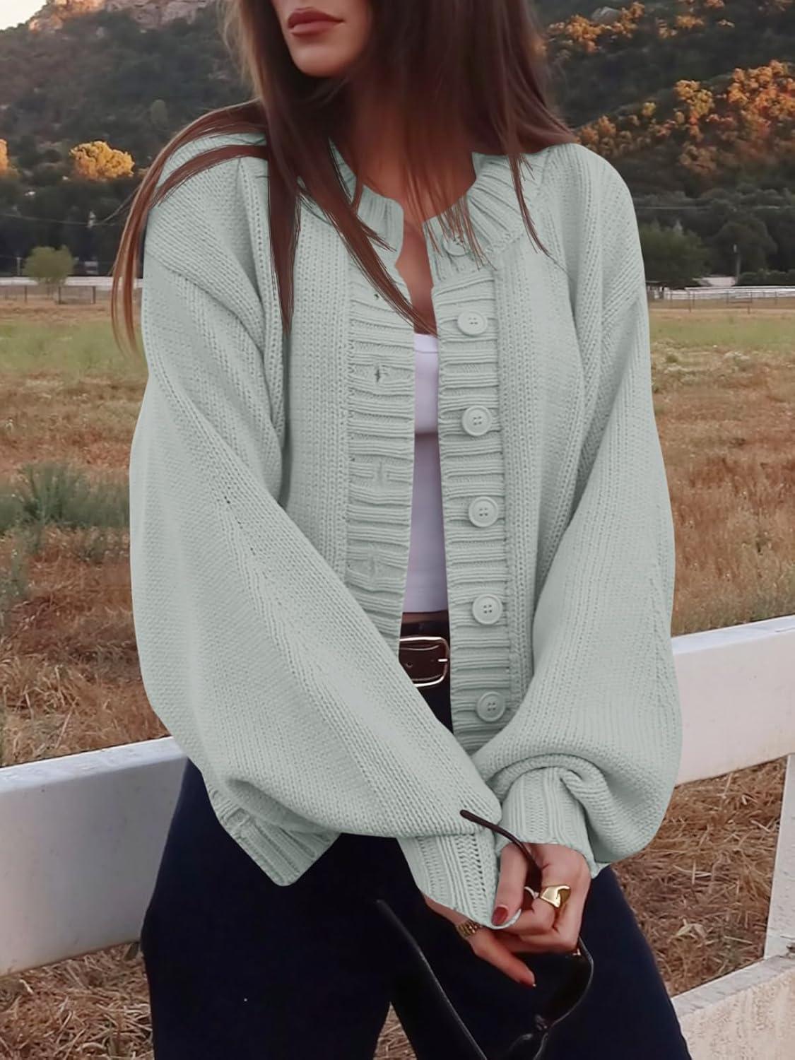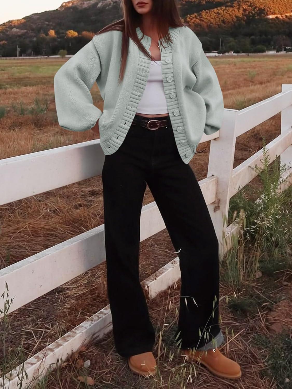 Saodimallsu Womens Long Sleeve Button Down Cardigan Sweaters Crew Neck Open Front Knit Casual Loose Fit Fall Sweater Coat(Light Gray)