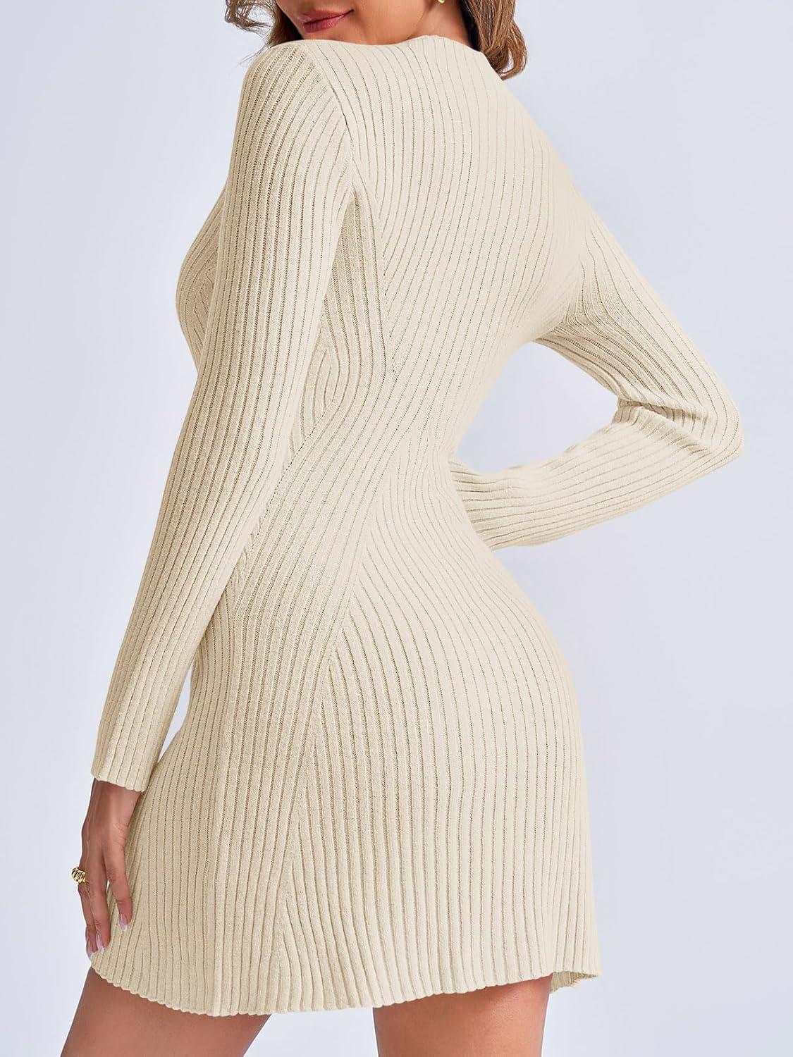 Saodimallsu Womens Long Sleeve Sweater Dress Bodycon Crew Neck Fall Slimming Knit Mini Dresses(Beige)