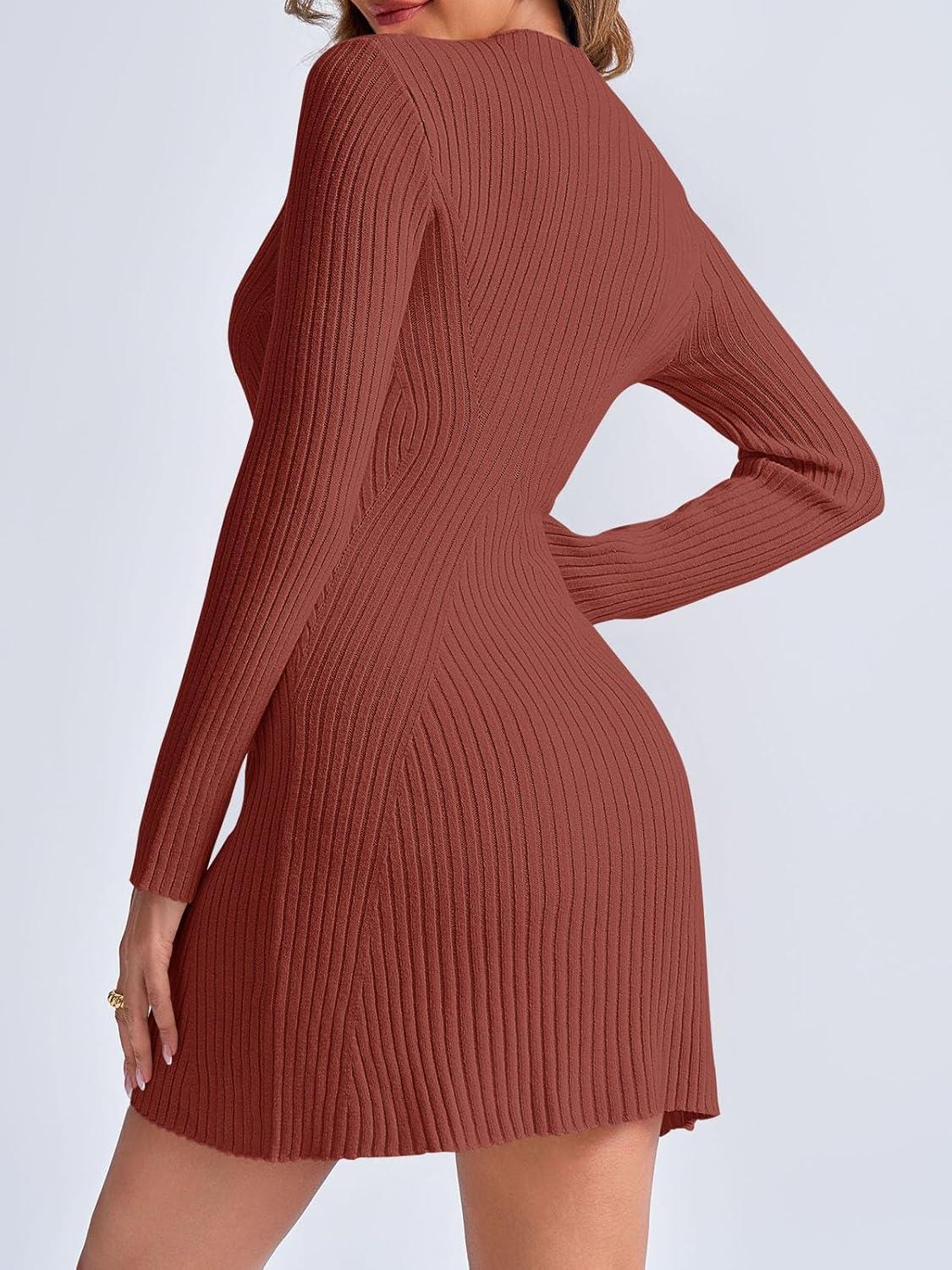 Saodimallsu Womens Long Sleeve Sweater Dress Bodycon Crew Neck Fall Slimming Knit Mini Dresses(Brick Red)