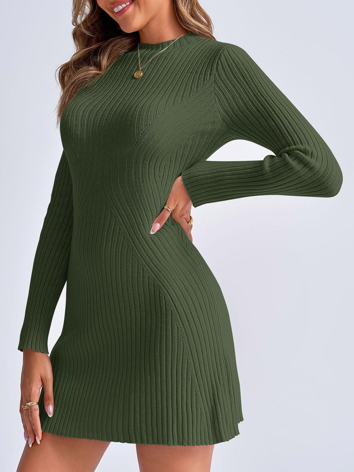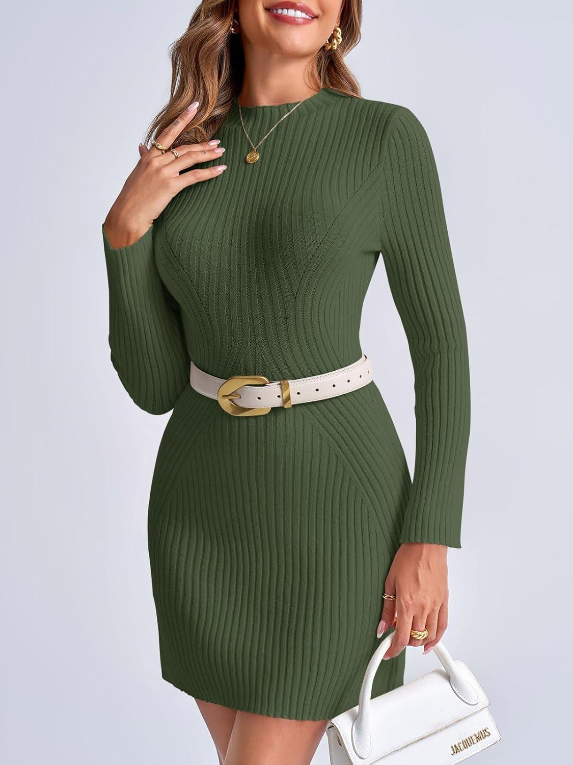 Saodimallsu Womens Long Sleeve Sweater Dress Bodycon Crew Neck Fall Slimming Knit Mini Dresses(Green)