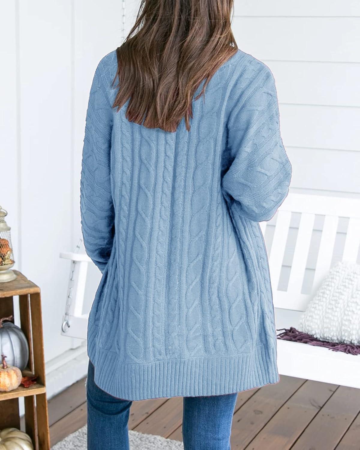 Saodimallsu Womens Loose Open Front Cardigan Long Sleeve Casual Lightweight Soft Knit Sweaters Coat with Pockets(Z Cable Blue)