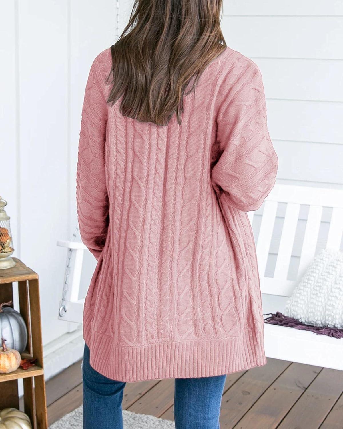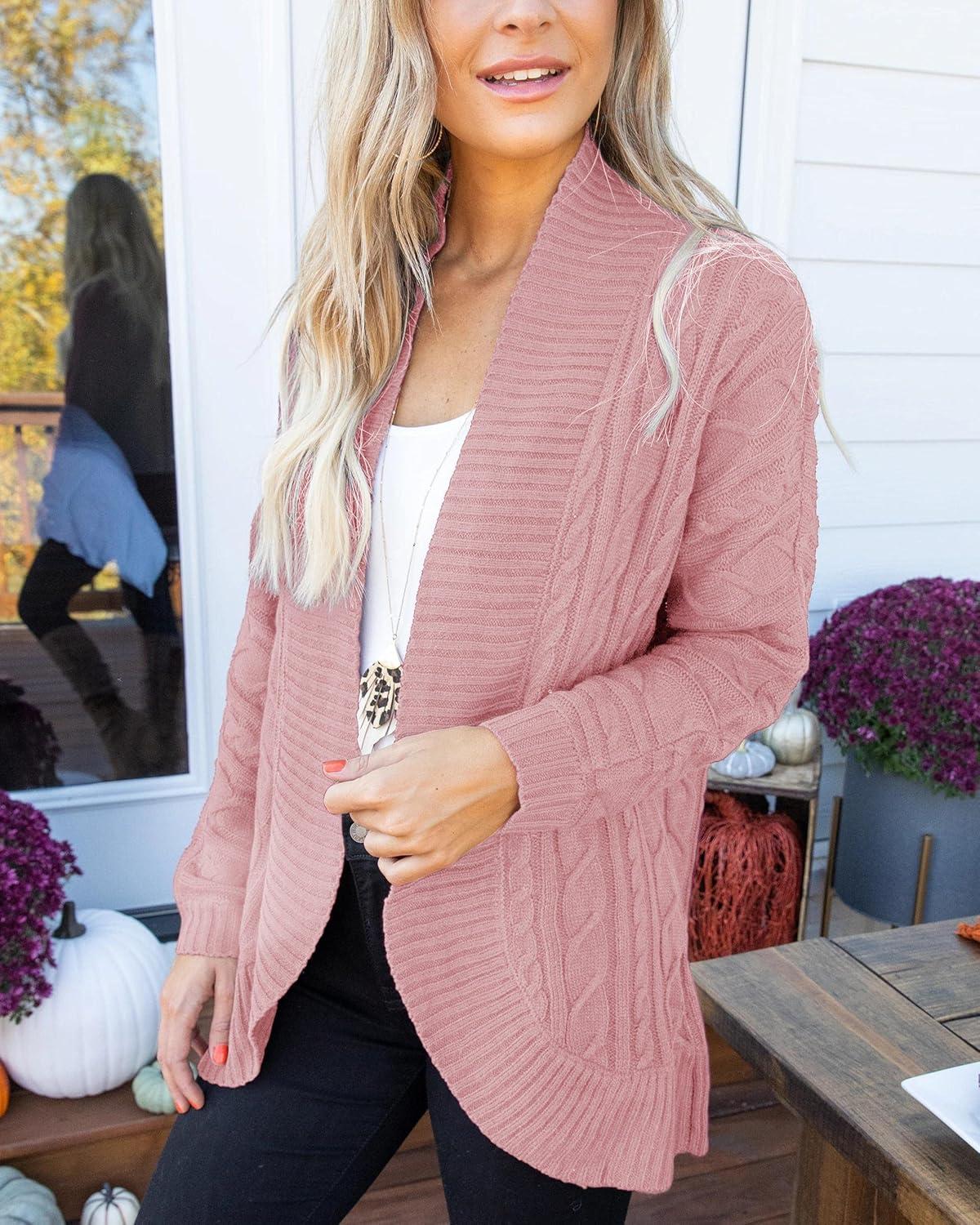 Saodimallsu Womens Loose Open Front Cardigan Long Sleeve Casual Lightweight Soft Knit Sweaters Coat with Pockets(Z Cable Pink)