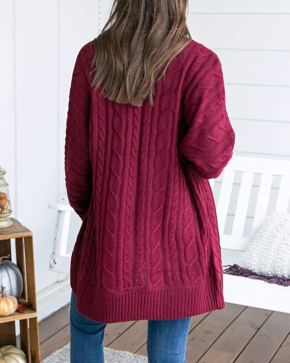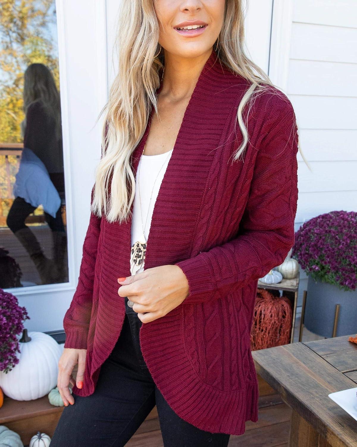 Saodimallsu Womens Loose Open Front Cardigan Long Sleeve Casual Lightweight Soft Knit Sweaters Coat with Pockets(Z Cable Purple)