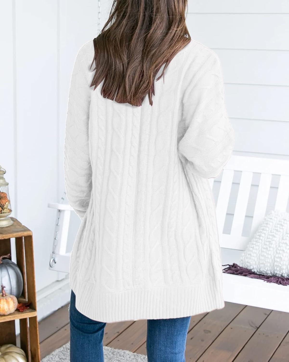 Saodimallsu Womens Loose Open Front Cardigan Long Sleeve Casual Lightweight Soft Knit Sweaters Coat with Pockets(Z Cable White)