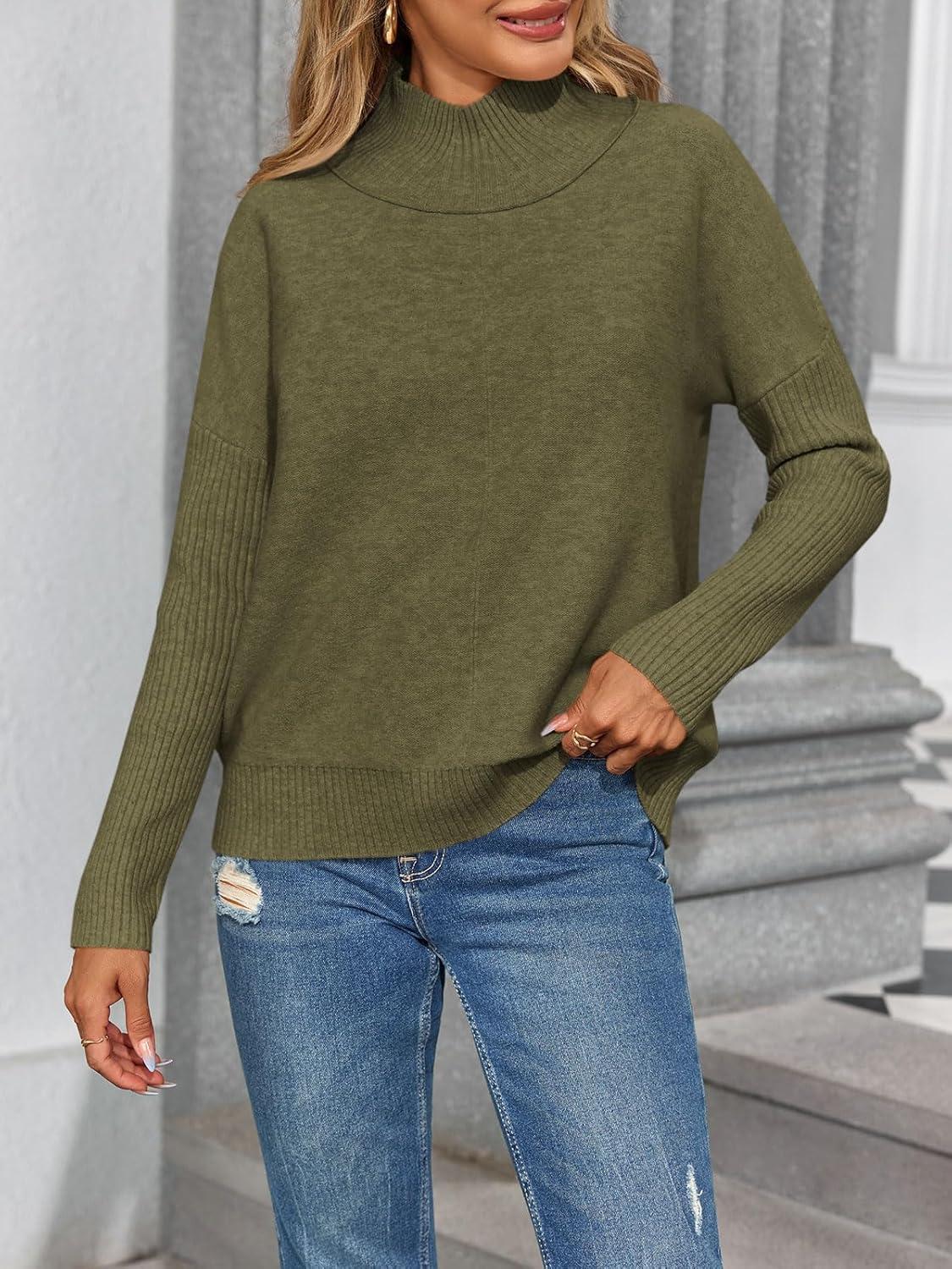 Saodimallsu Womens Mock Neck Sweater Tops Fall Long Sleeve Loose Casual Soft Knit Batwing Pullover Sweaters(Army Green)