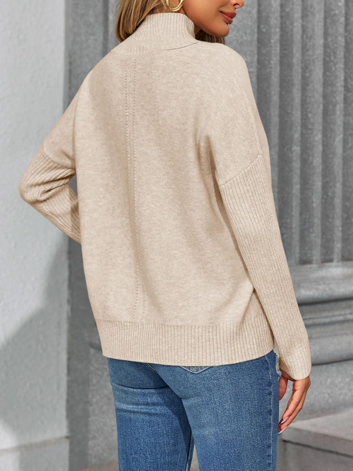 Saodimallsu Womens Mock Neck Sweater Tops Fall Long Sleeve Loose Casual Soft Knit Batwing Pullover Sweaters(Beige)