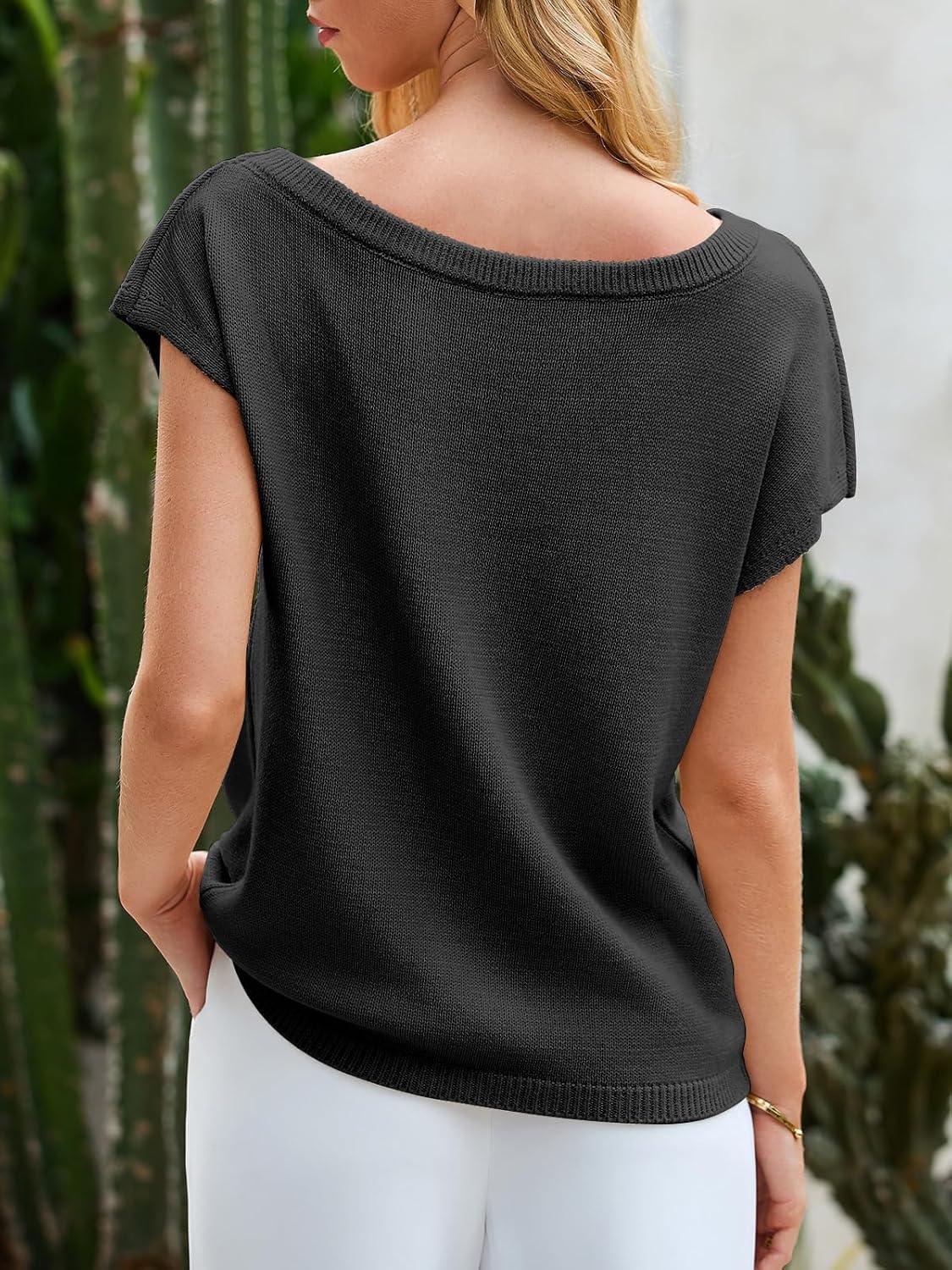 Saodimallsu Womens Off One Shoulder Sweater Tops Summer Short Sleeve Casual Loose Knit Trendy Going Out Tops(Black)