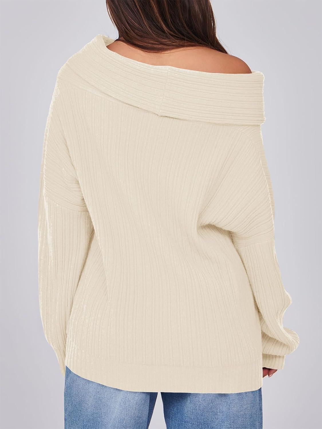 Saodimallsu Womens Off The Shoulder Sweater Top Oversized Fall Batwing Boat Neck Knit Sexy Casual Pullover(Beige)