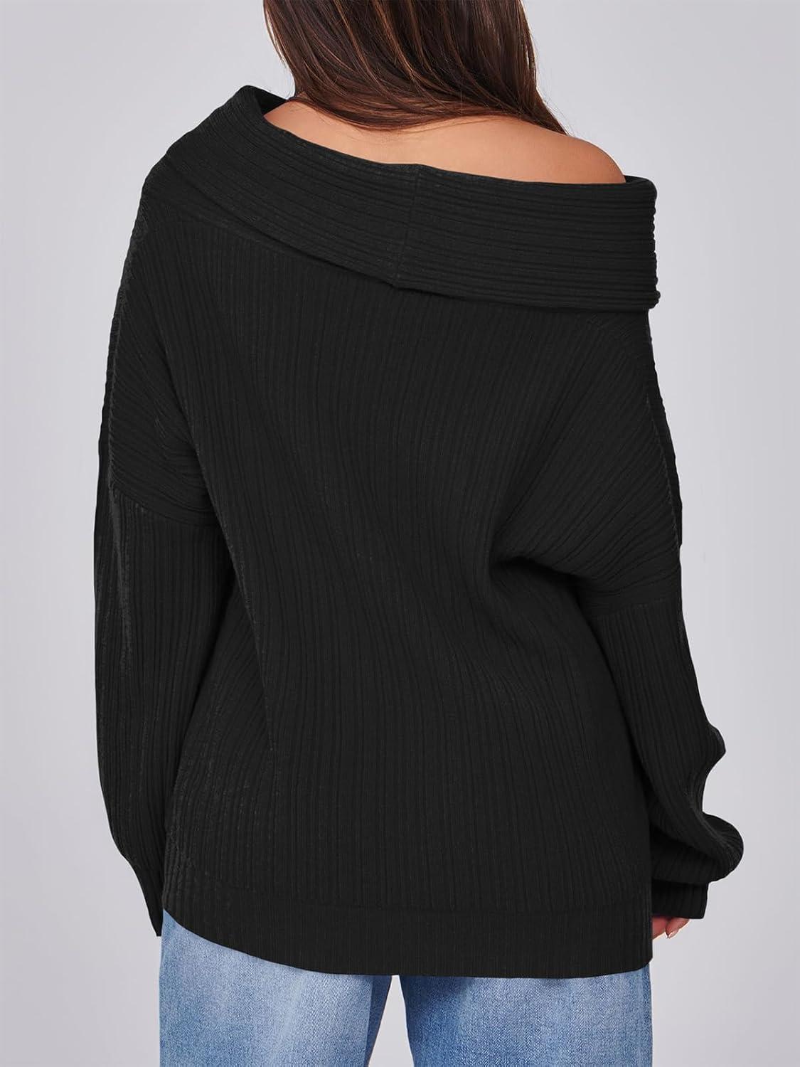 Saodimallsu Womens Off The Shoulder Sweater Top Oversized Fall Batwing Boat Neck Knit Sexy Casual Pullover(Black)