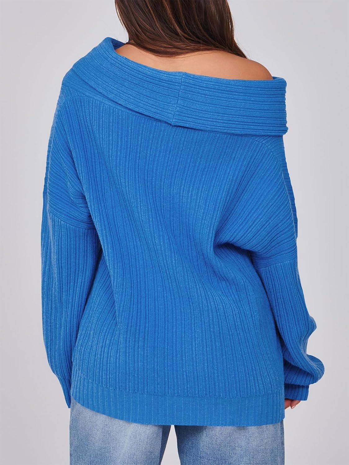 Saodimallsu Womens Off The Shoulder Sweater Top Oversized Fall Batwing Boat Neck Knit Sexy Casual Pullover(Blue)