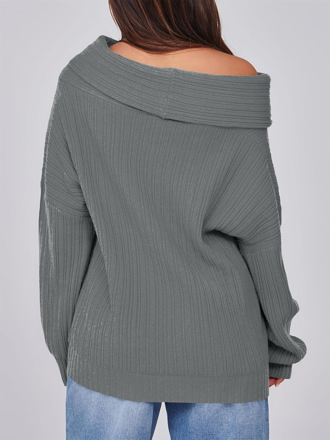 Saodimallsu Womens Off The Shoulder Sweater Top Oversized Fall Batwing Boat Neck Knit Sexy Casual Pullover(Grey)