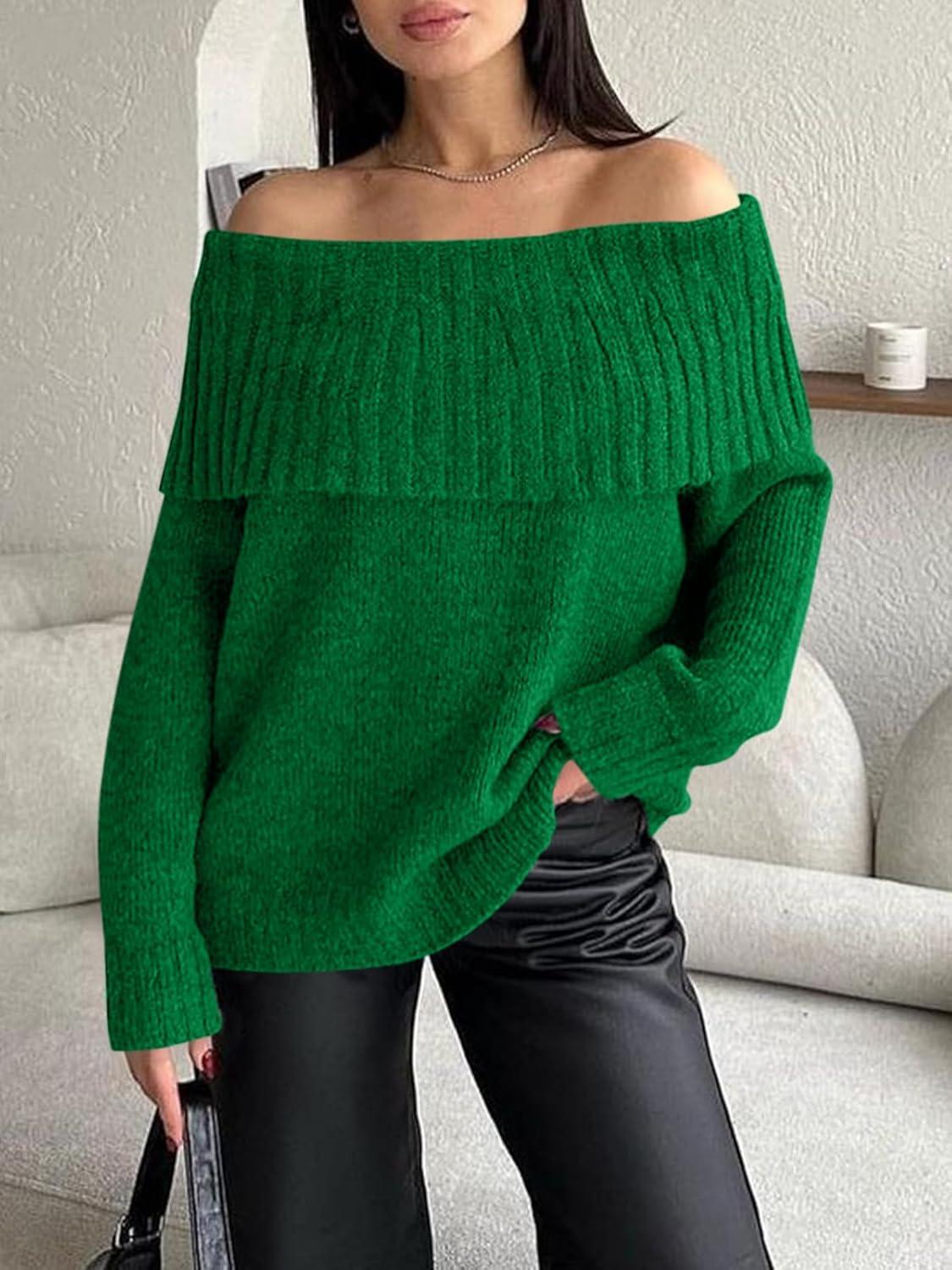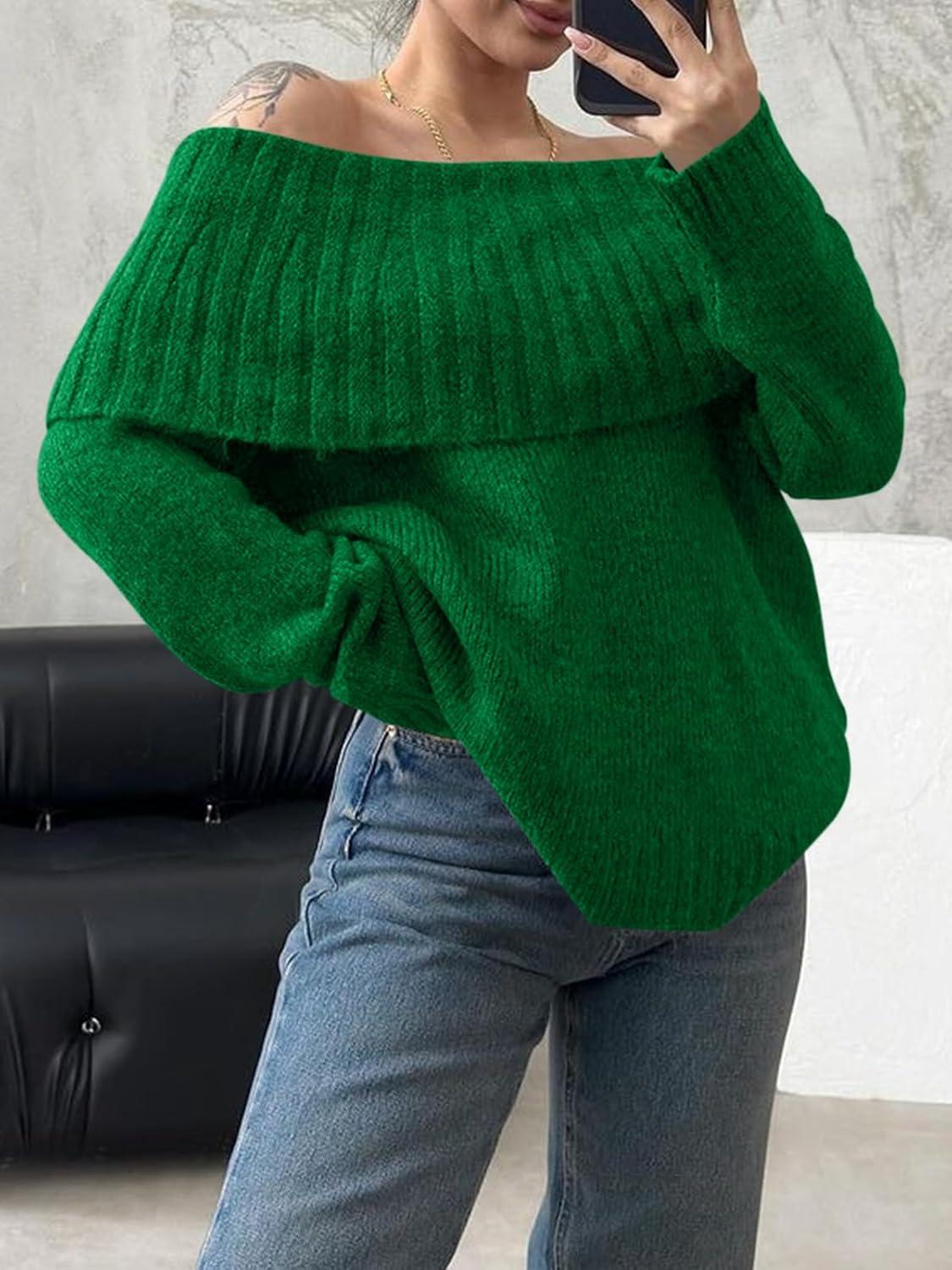 Saodimallsu Womens Off The Shoulder Sweaters Oversized Long Sleeve Loose Ribbed Knit Fall Trendy Pullover Tops(Green)