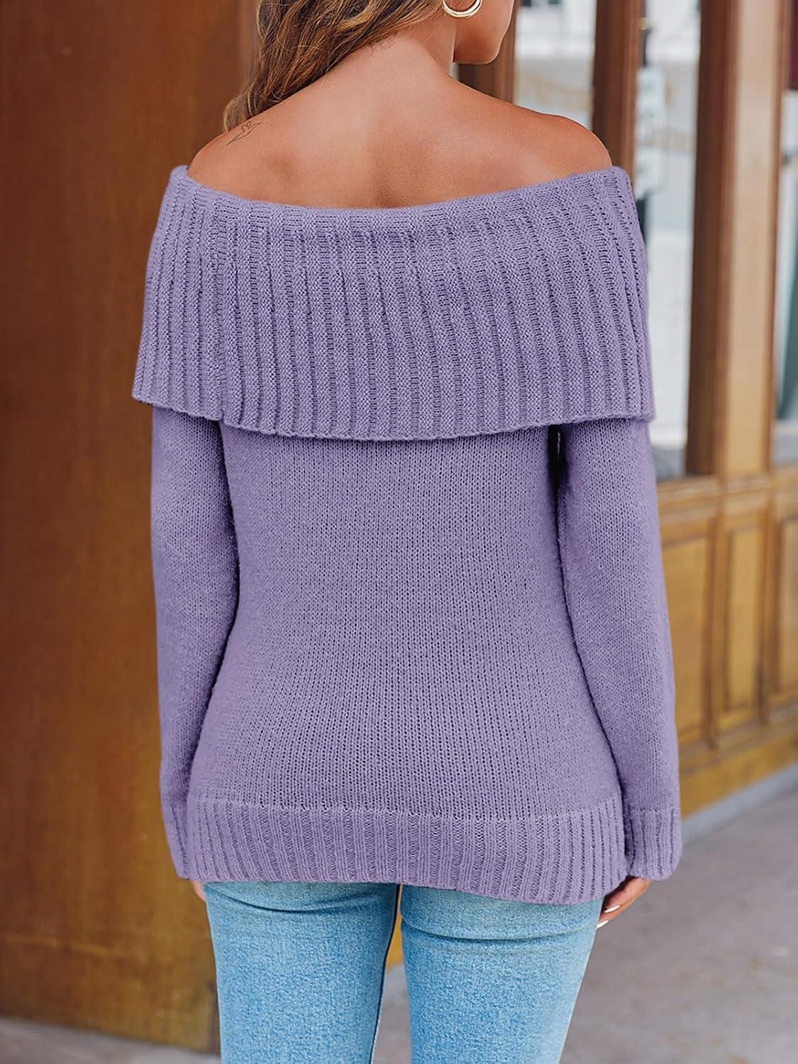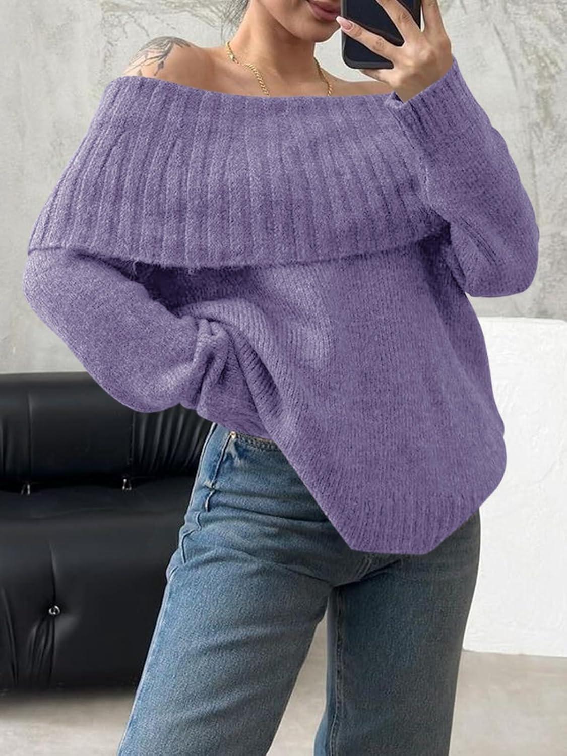 Saodimallsu Womens Off The Shoulder Sweaters Oversized Long Sleeve Loose Ribbed Knit Fall Trendy Pullover Tops(Light Purple)