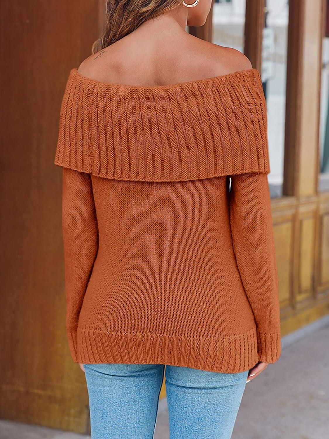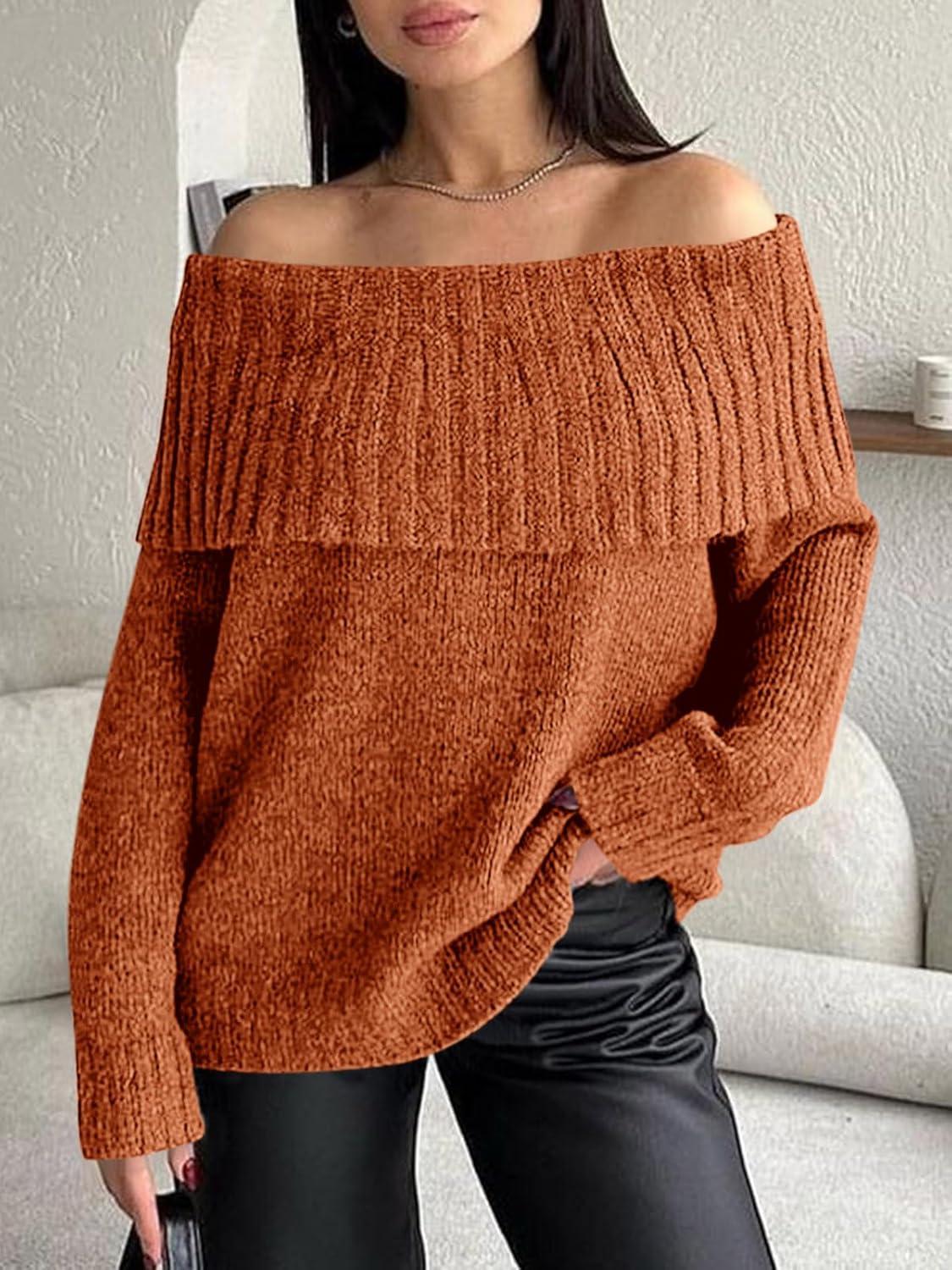 Saodimallsu Womens Off The Shoulder Sweaters Oversized Long Sleeve Loose Ribbed Knit Fall Trendy Pullover Tops(Tangerine)