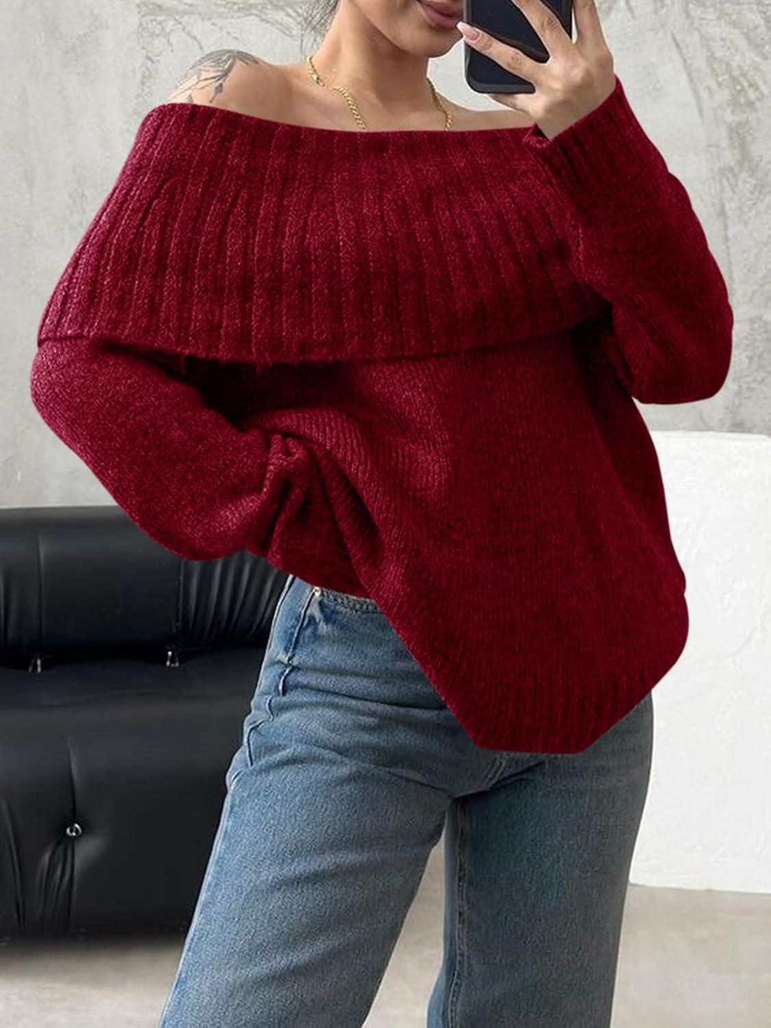 Saodimallsu Womens Off The Shoulder Sweaters Oversized Long Sleeve Loose Ribbed Knit Fall Trendy Pullover Tops(Wine Red)