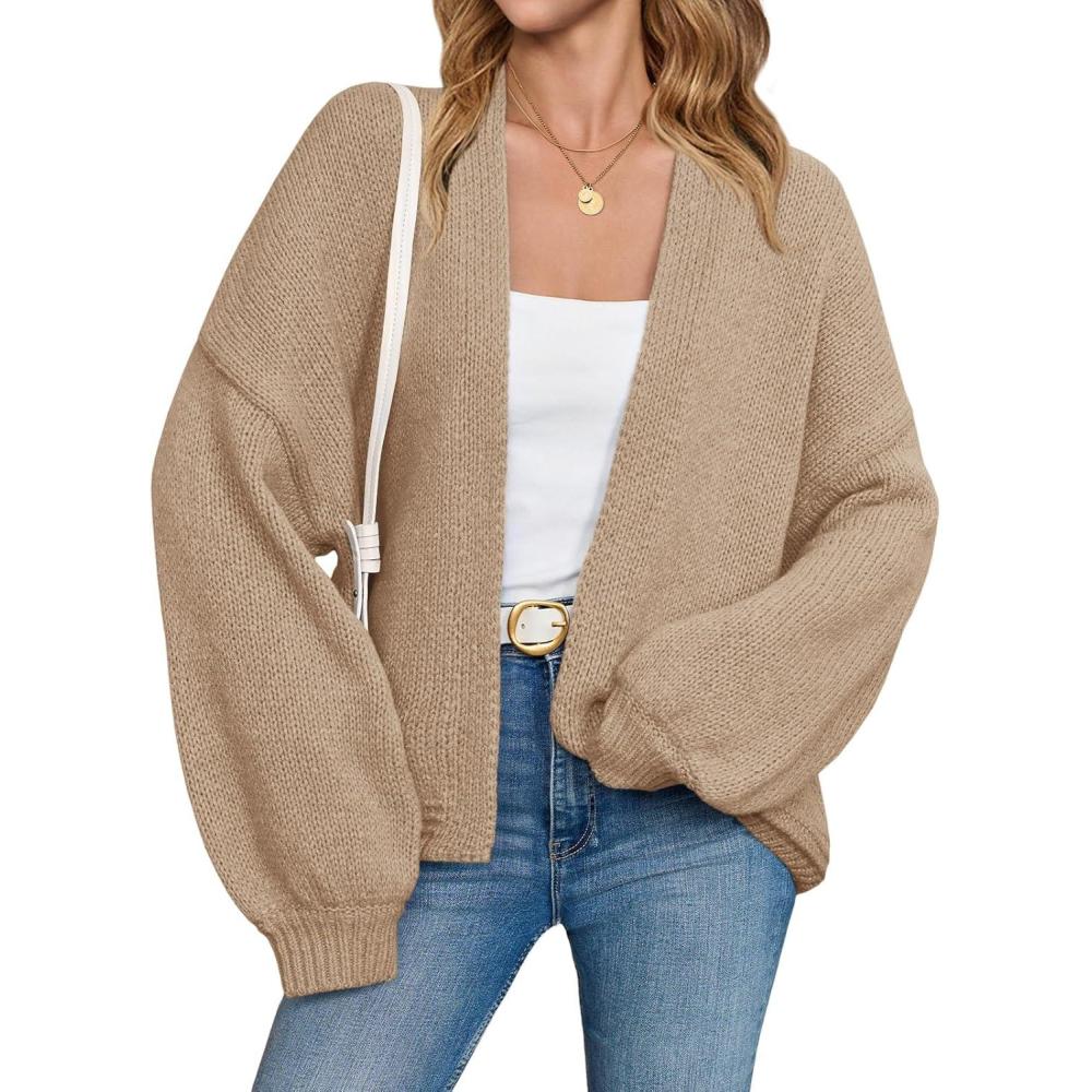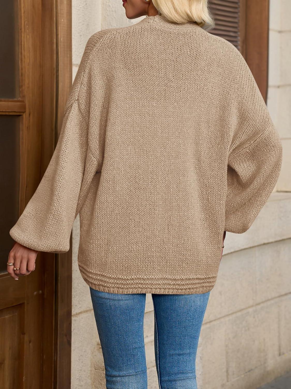 Saodimallsu Womens Open Front Cardigans Long Lantern Sleeve Oversized Chunky Knit Casual Fall Sweater Coat(Light Brown)