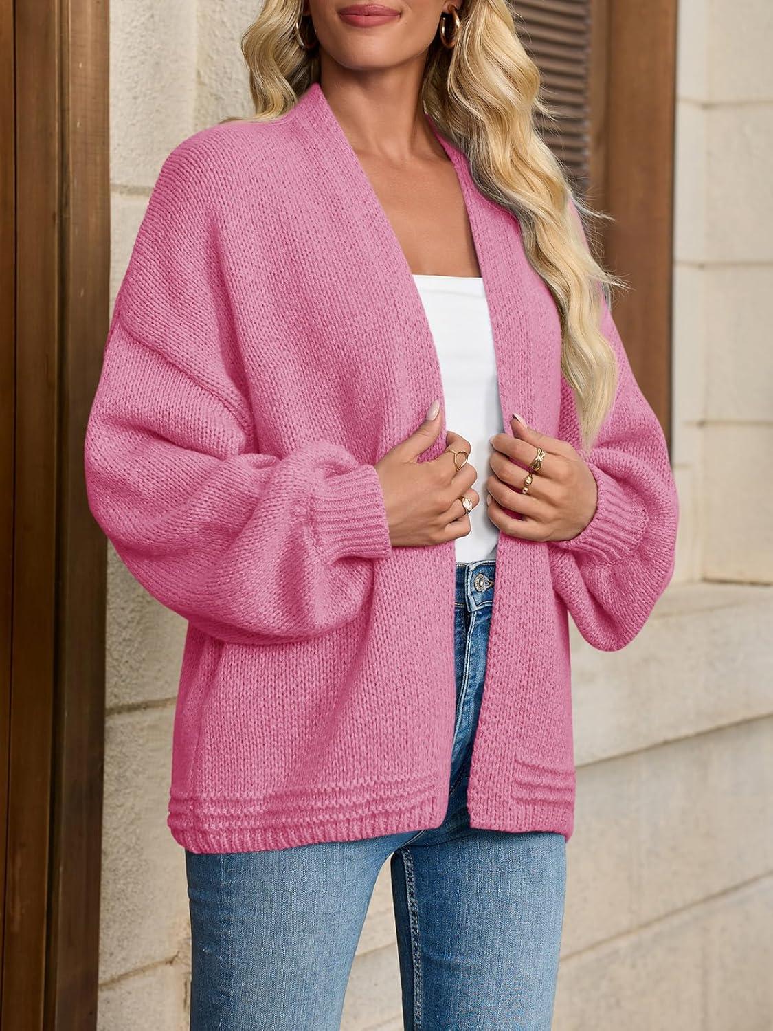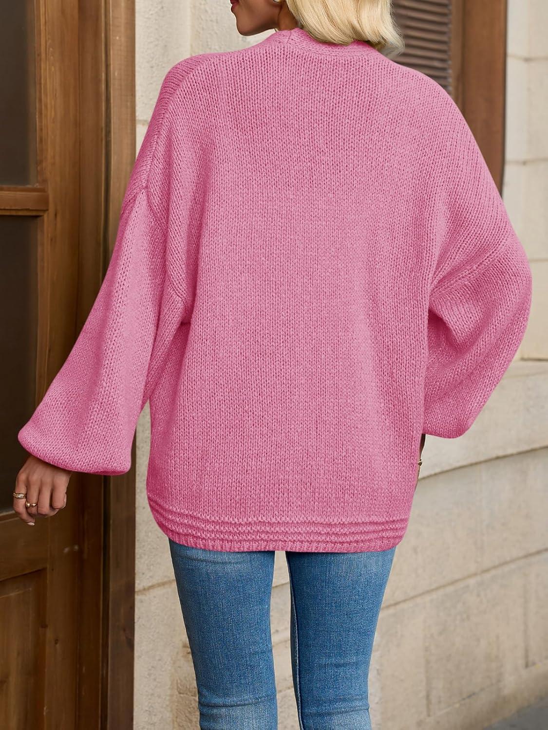 Saodimallsu Womens Open Front Cardigans Long Lantern Sleeve Oversized Chunky Knit Casual Fall Sweater Coat(Pink)