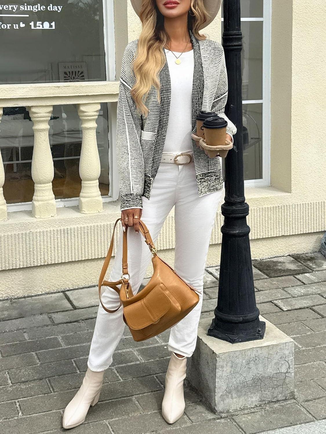 Saodimallsu Womens Open Front Cardigans Long Sleeve Waffle Knit Shawl Collared Fall Trendy Sweater Coats with Pockets(Apricot)