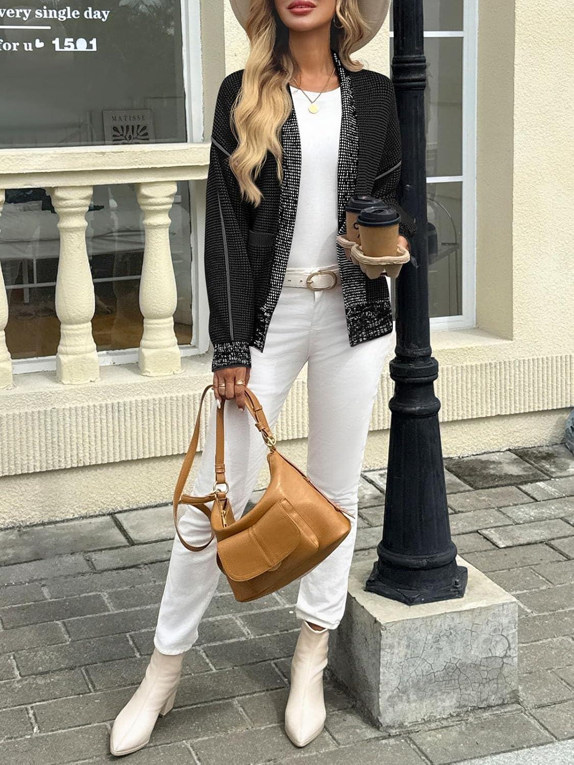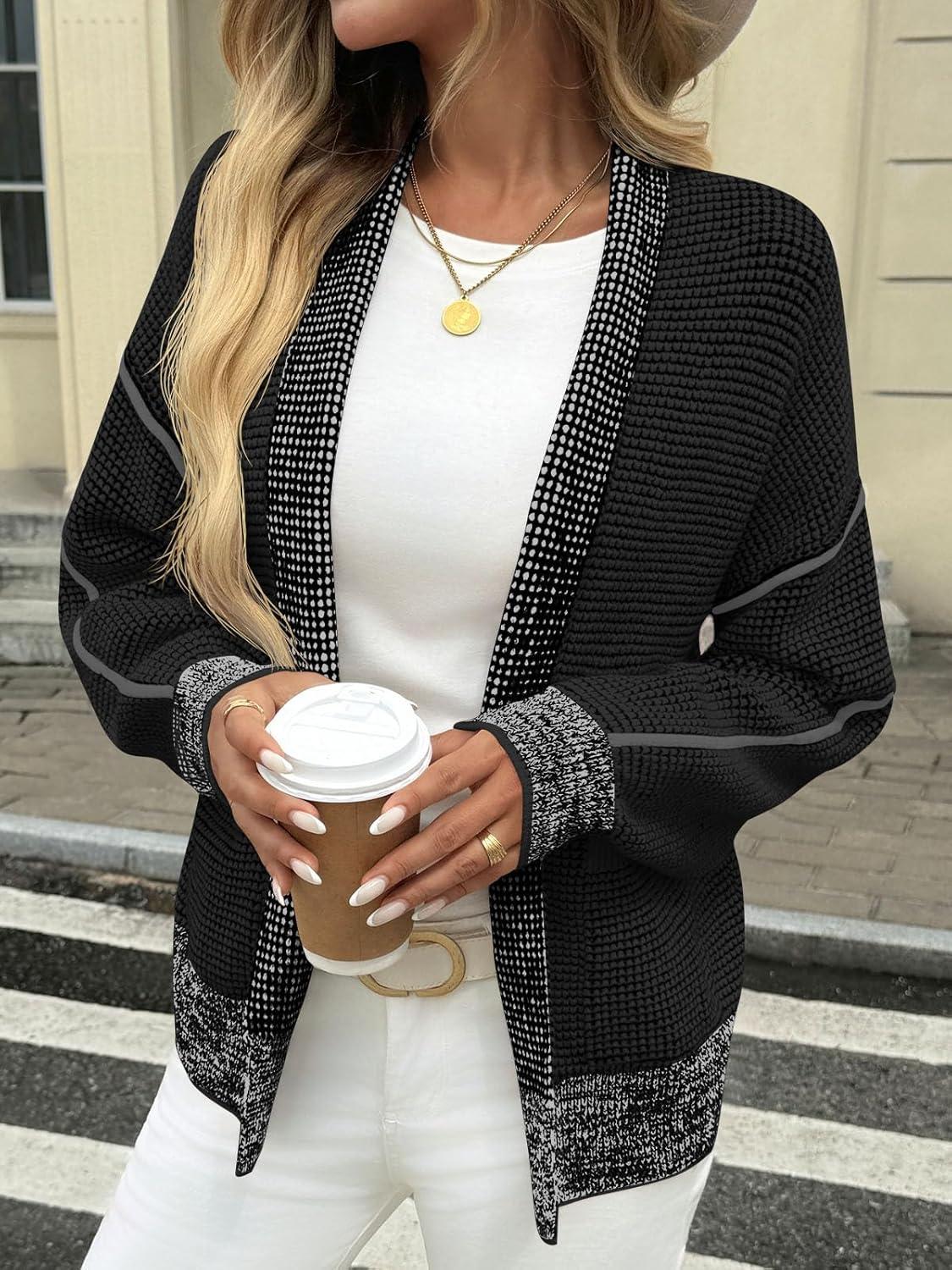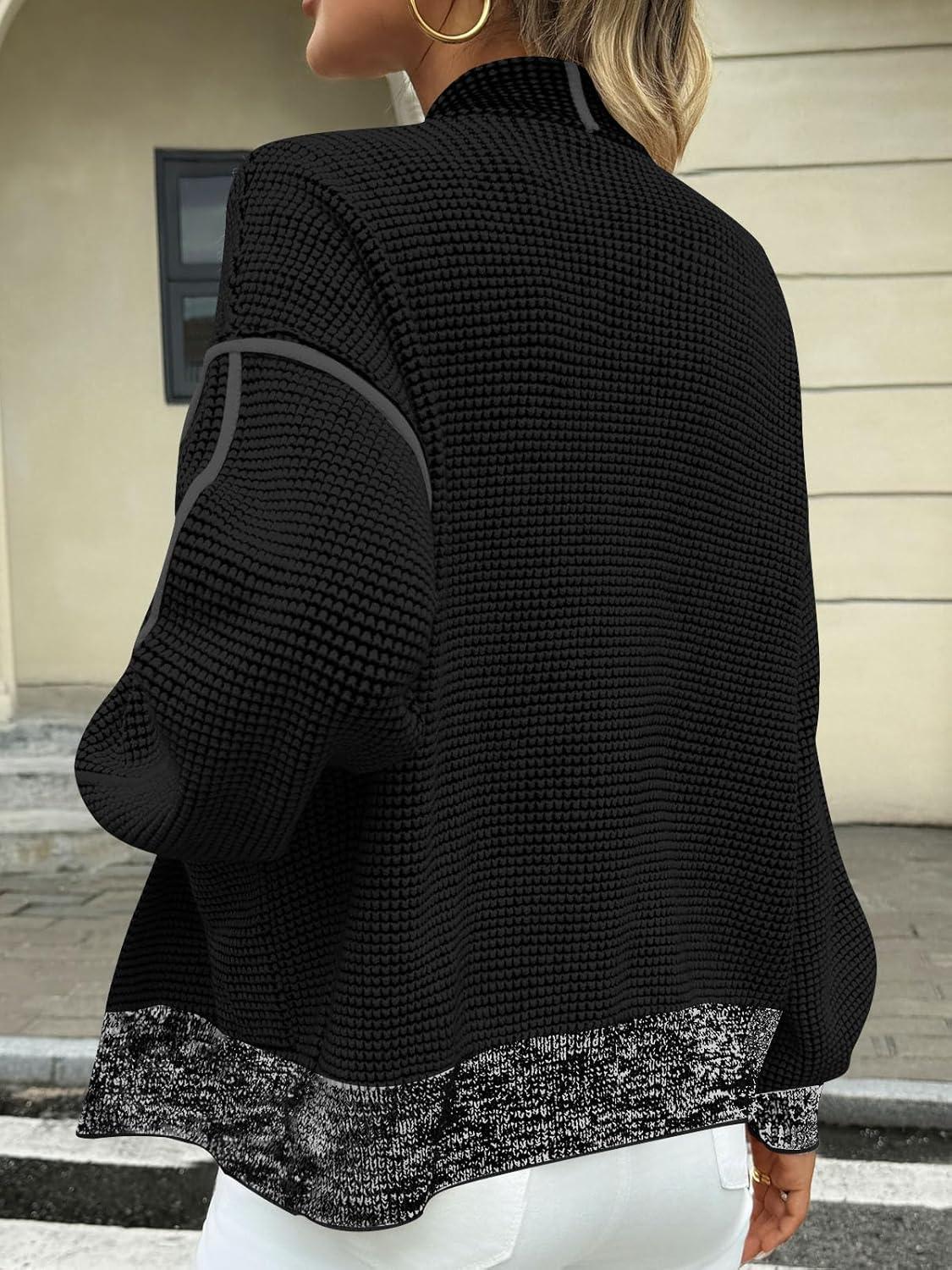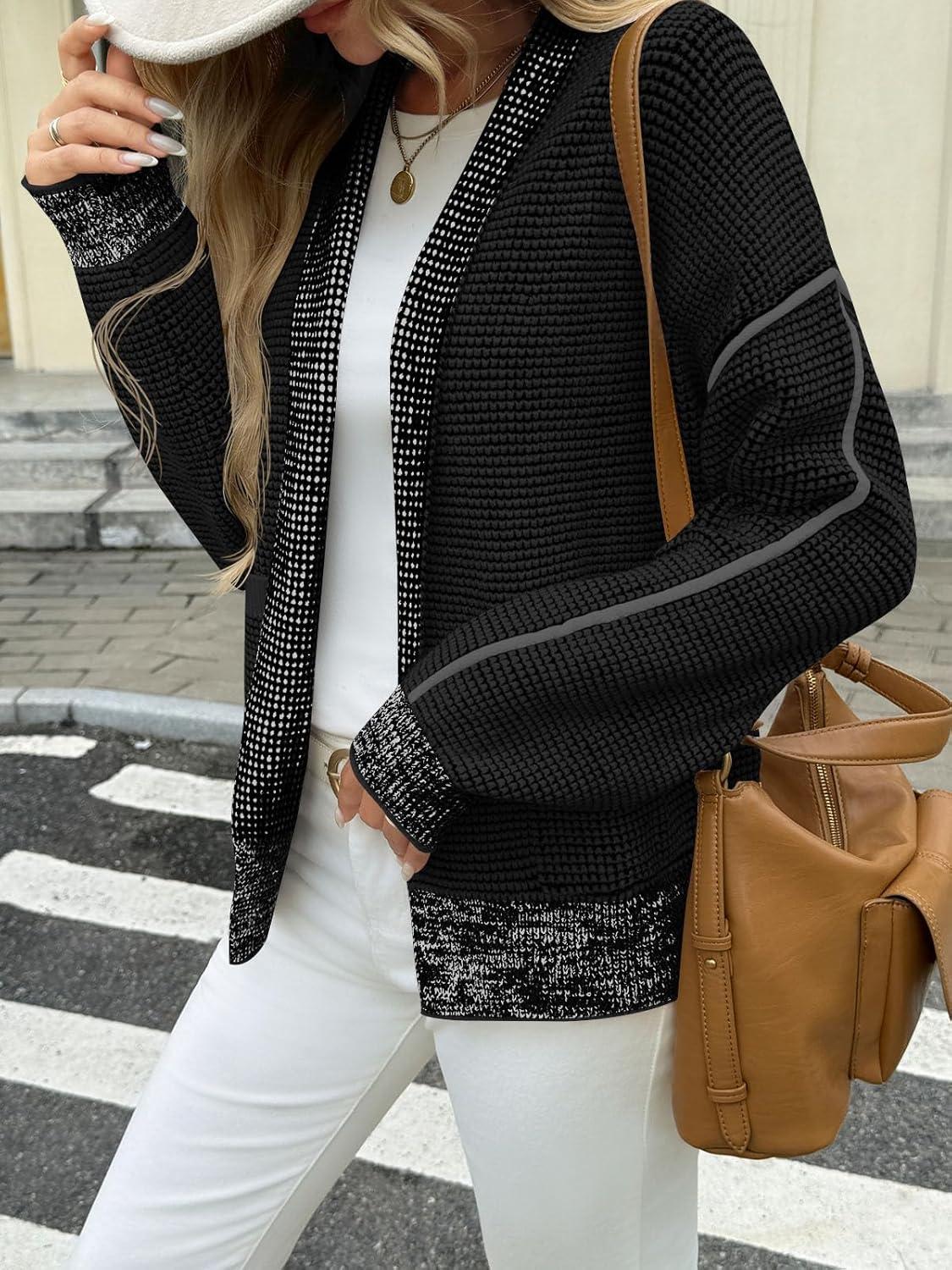 Saodimallsu Womens Open Front Cardigans Long Sleeve Waffle Knit Shawl Collared Fall Trendy Sweater Coats with Pockets(Black)