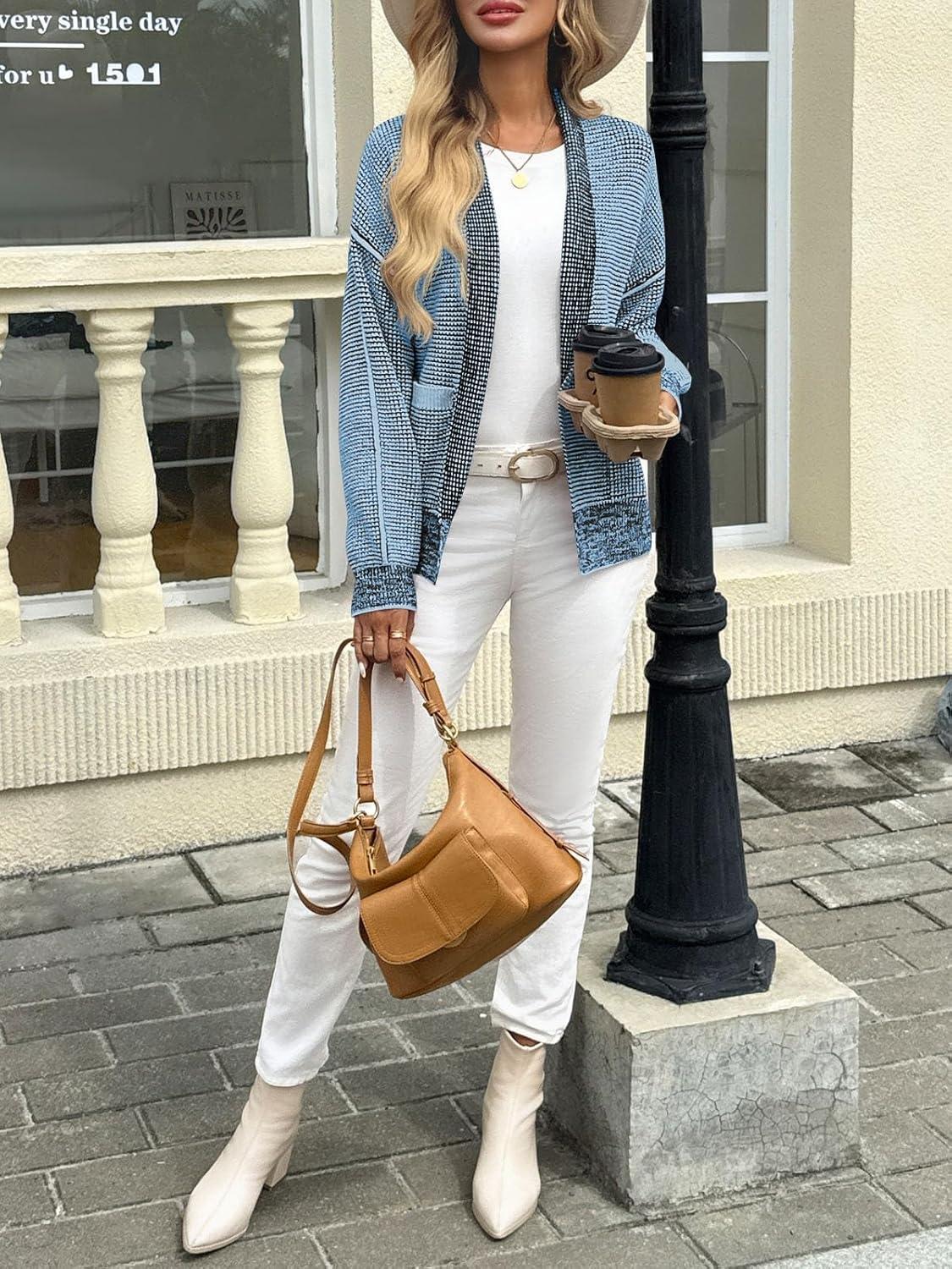 Saodimallsu Womens Open Front Cardigans Long Sleeve Waffle Knit Shawl Collared Fall Trendy Sweater Coats with Pockets(Blue)