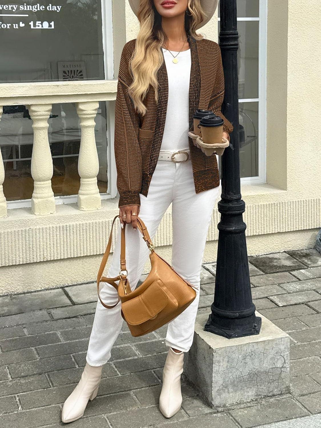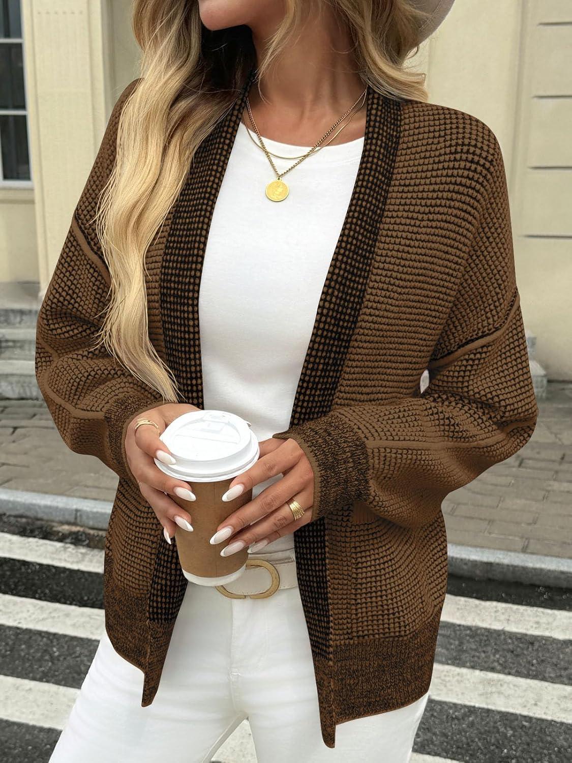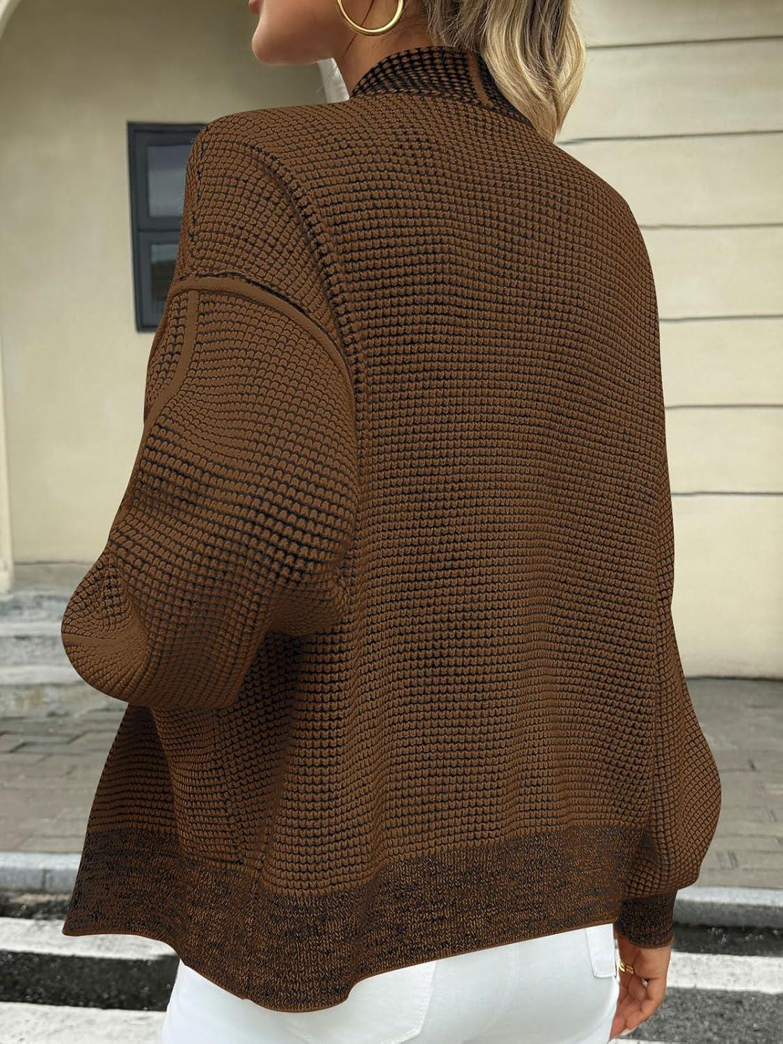 Saodimallsu Womens Open Front Cardigans Long Sleeve Waffle Knit Shawl Collared Fall Trendy Sweater Coats with Pockets(Brown)