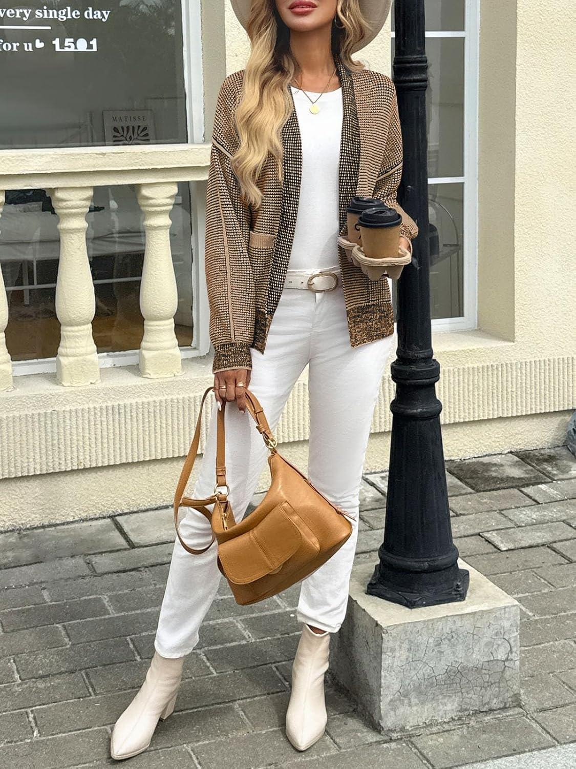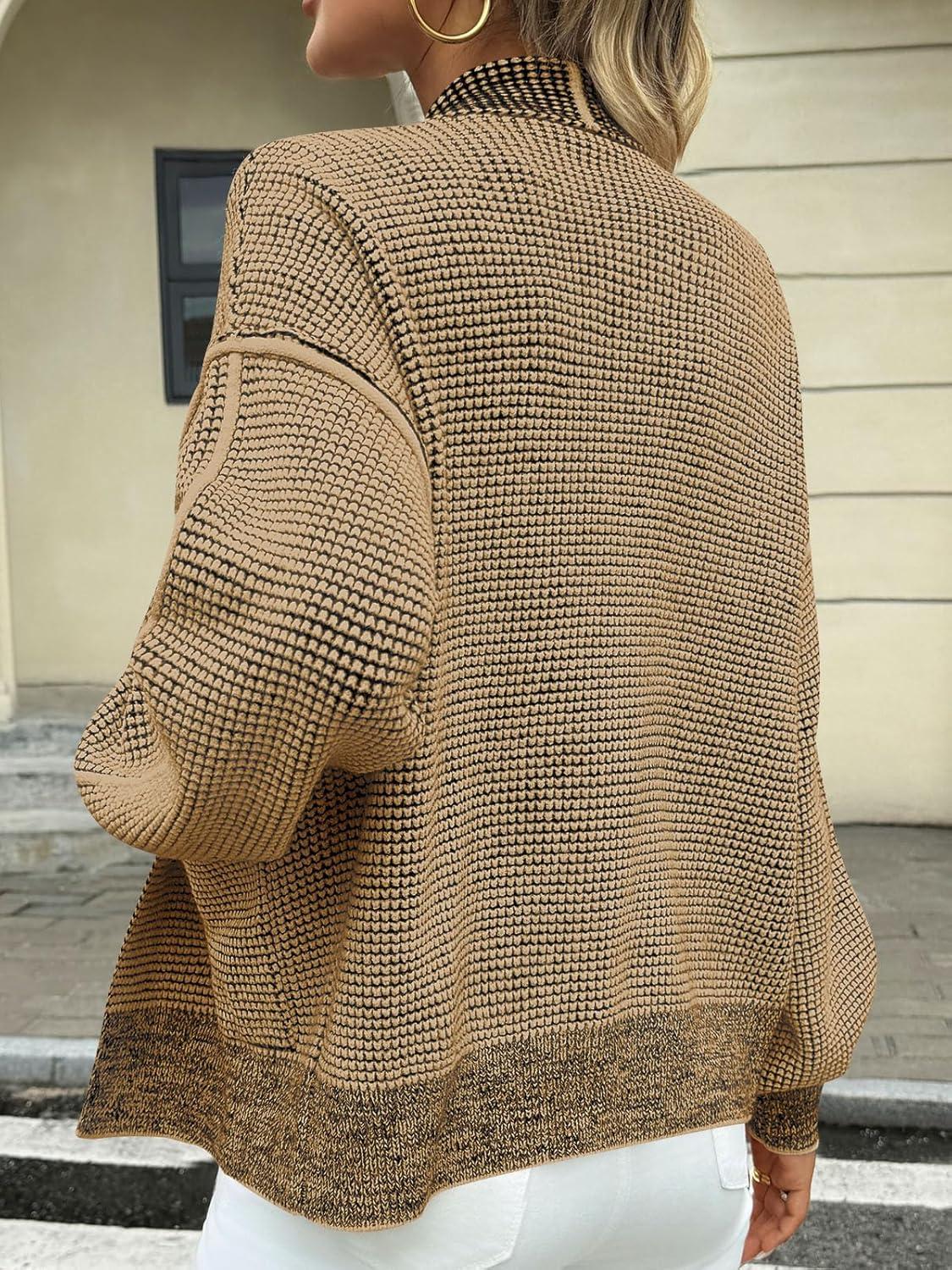Saodimallsu Womens Open Front Cardigans Long Sleeve Waffle Knit Shawl Collared Fall Trendy Sweater Coats with Pockets(Coffee)