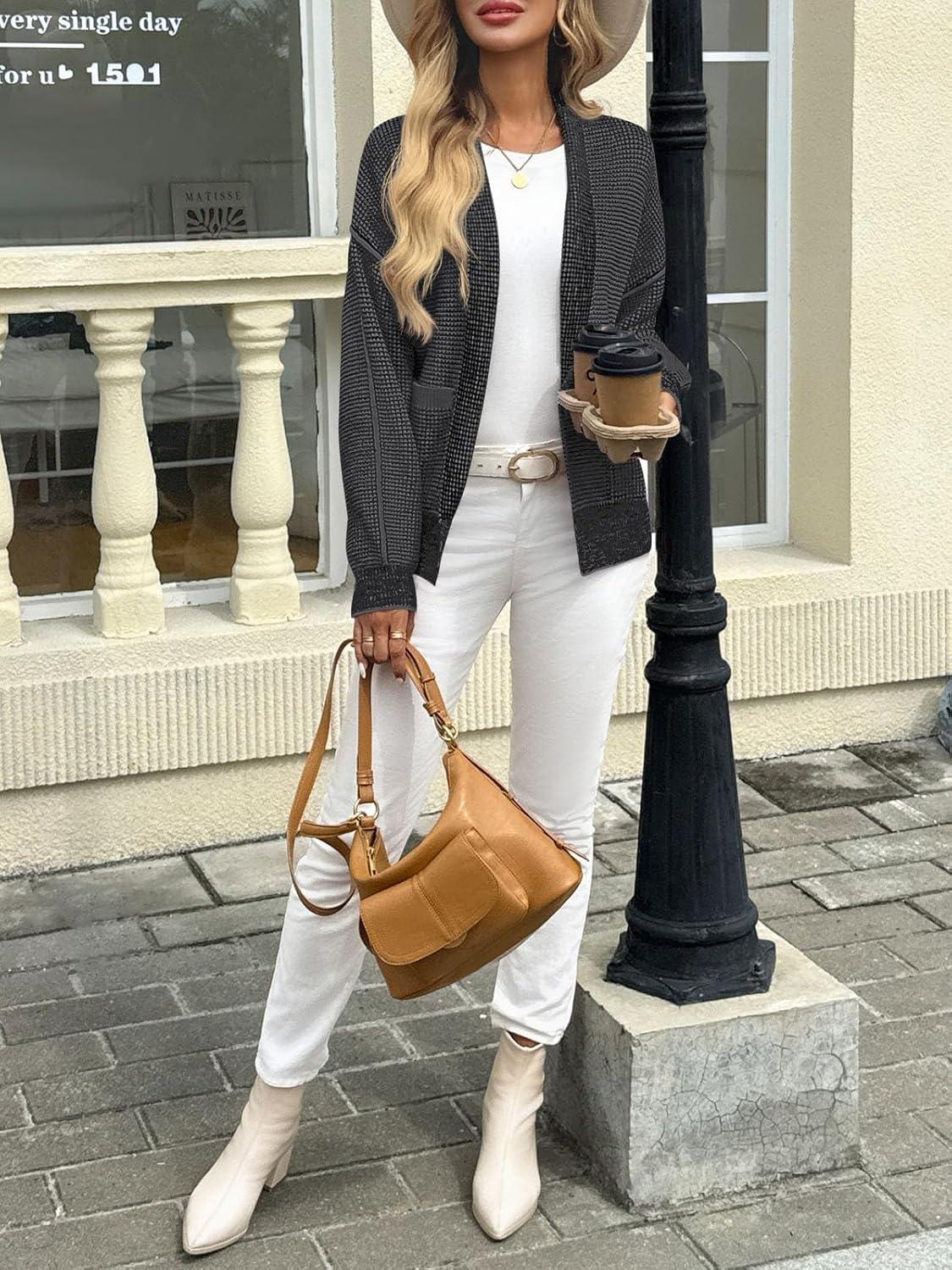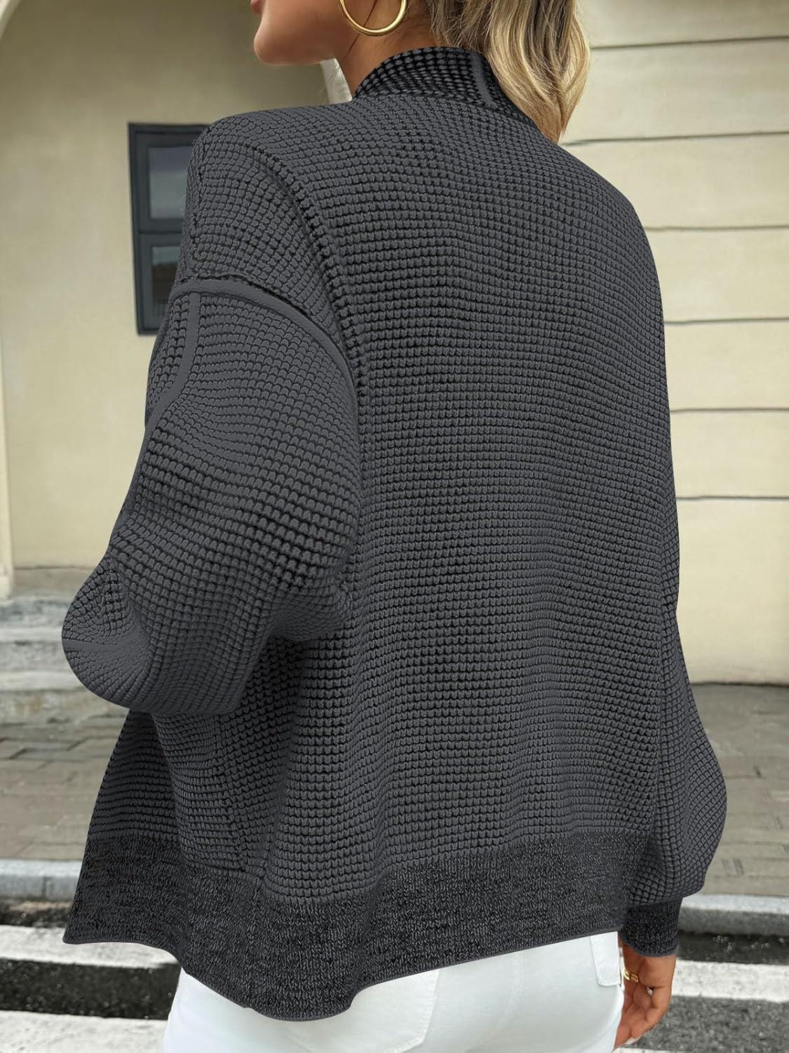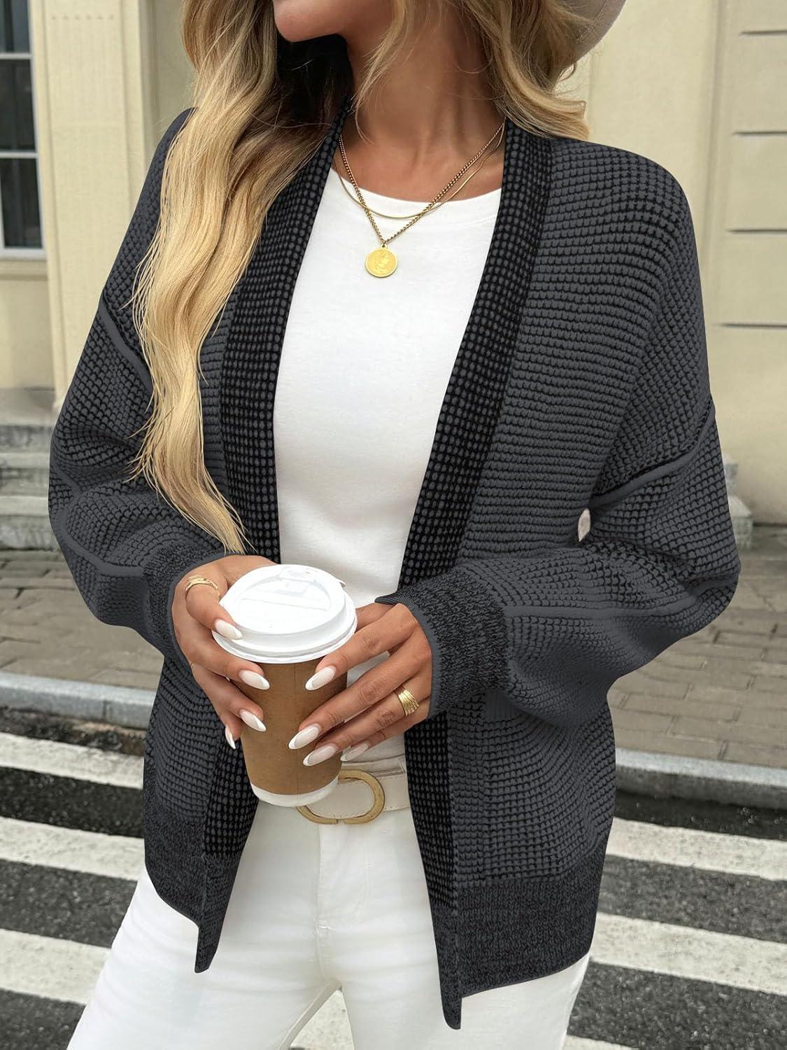 Saodimallsu Womens Open Front Cardigans Long Sleeve Waffle Knit Shawl Collared Fall Trendy Sweater Coats with Pockets(Dark Gray)