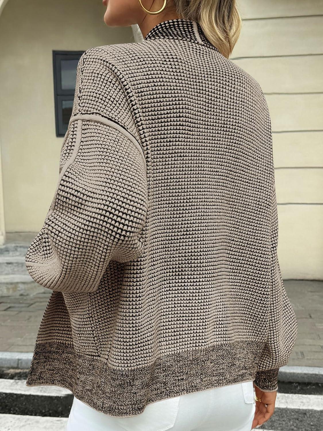 Saodimallsu Womens Open Front Cardigans Long Sleeve Waffle Knit Shawl Collared Fall Trendy Sweater Coats with Pockets(Light Khaki)
