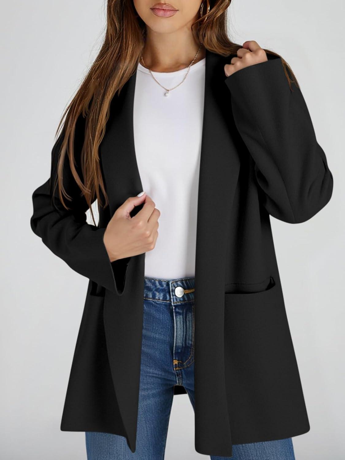 Saodimallsu Womens Open Front Knit Cardigans Oversized 2025 Fall Lapel Hooded Long Sweater Coats with Pockets(Black)