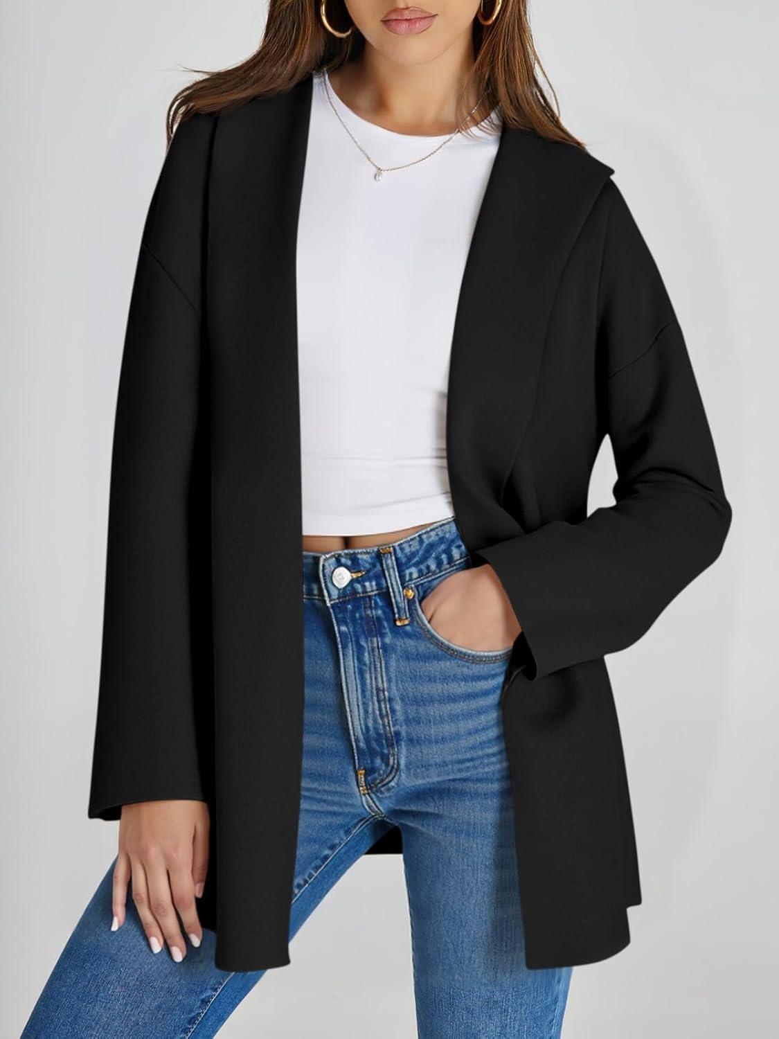 Long cardigans for women trendy, designed with slouchy dropped shoulder and lapel shawl collar; womens cardigan with straight side pockets, length lands just below the hip. An ultra-warm and thick sweater coat with an oversized hood and open front. The new short-length lands just below the hip and is perfect for everyday wear.