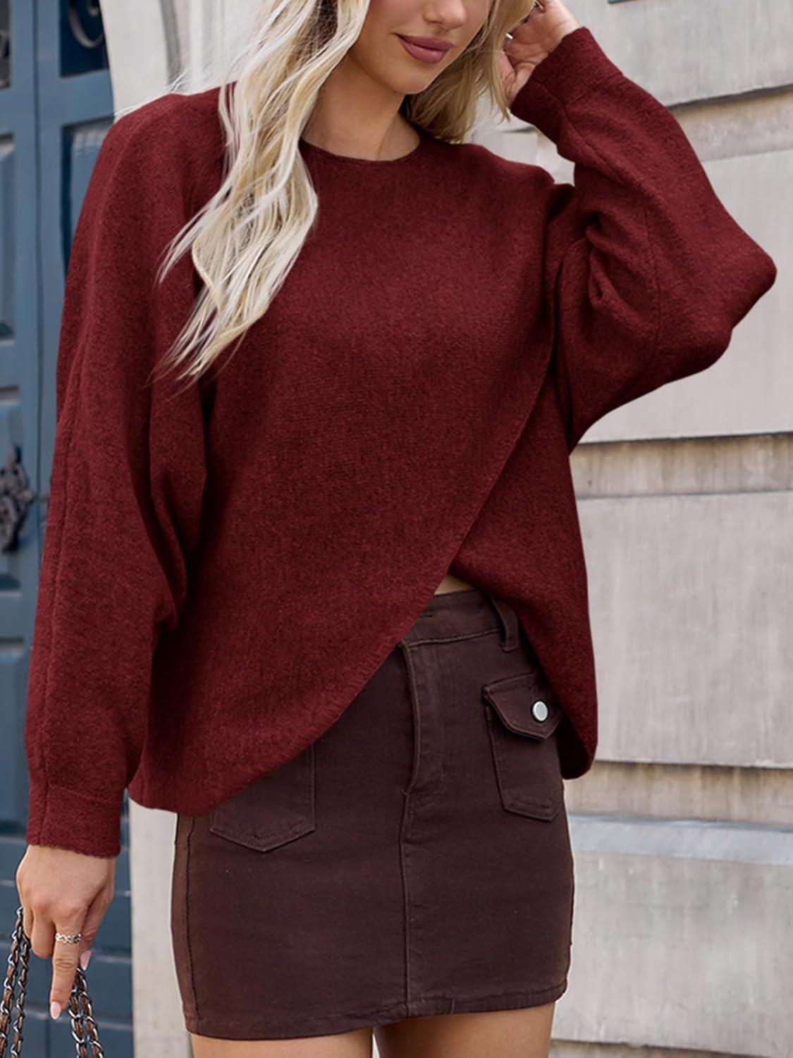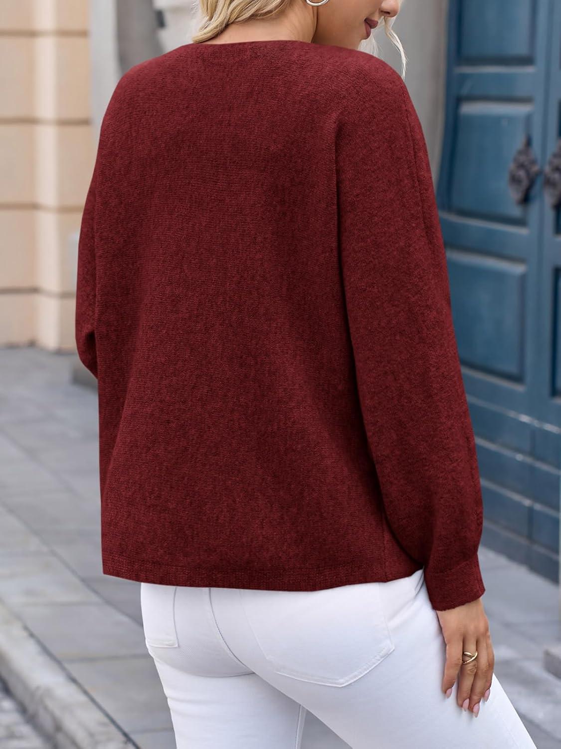 Saodimallsu Womens Oversized Batwing Sweaters Long Sleeve Crew Neck Poncho Slouchy Knit Asymmetrical Pullover Tops(Burgundy)