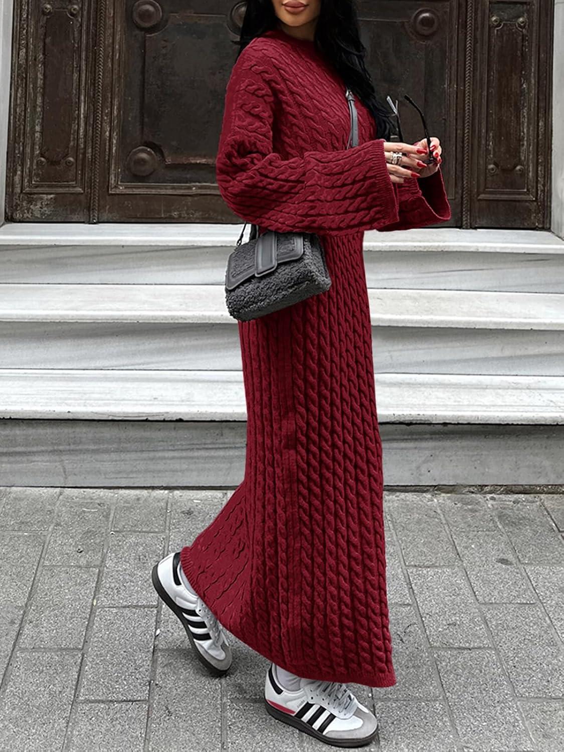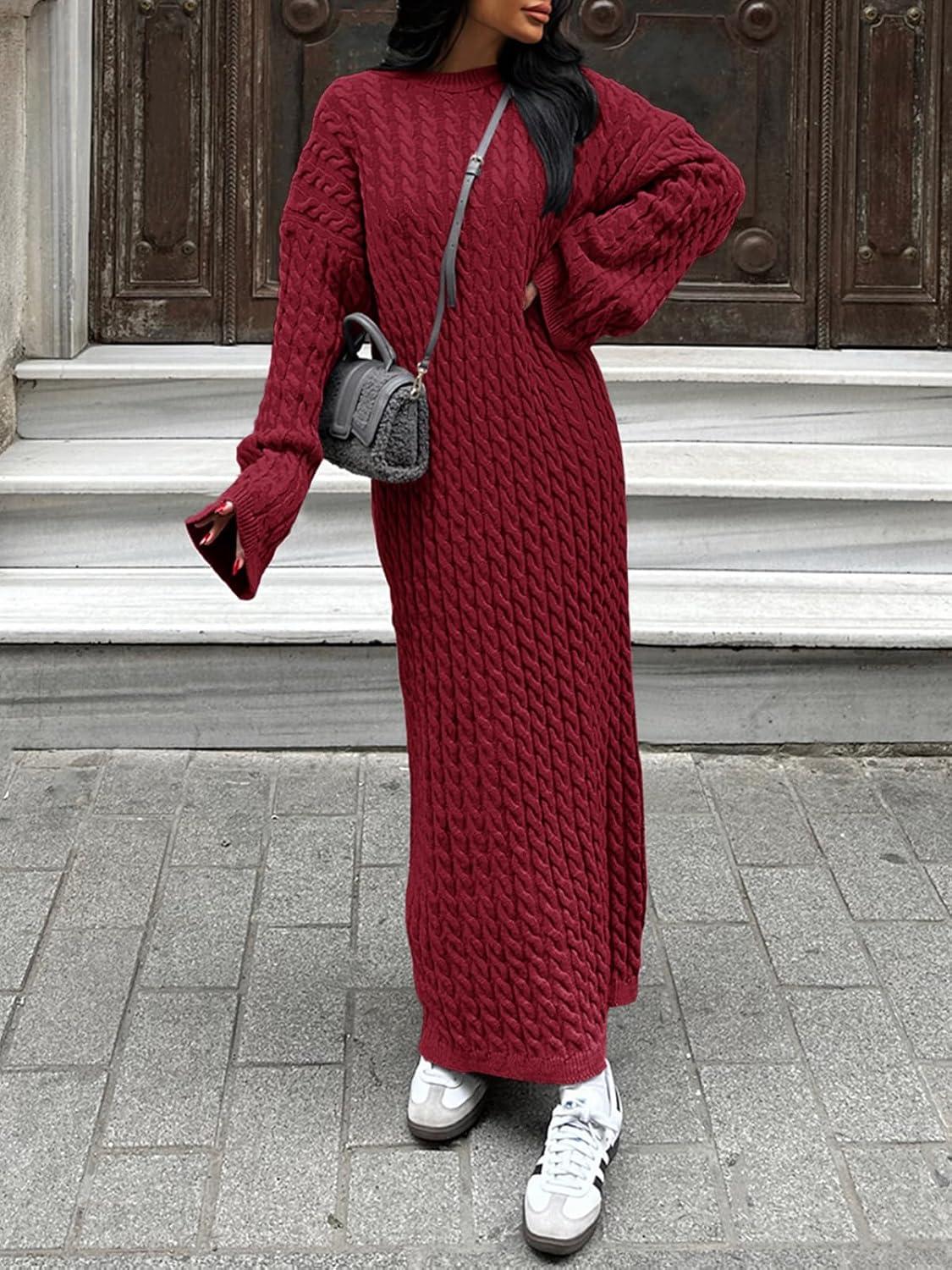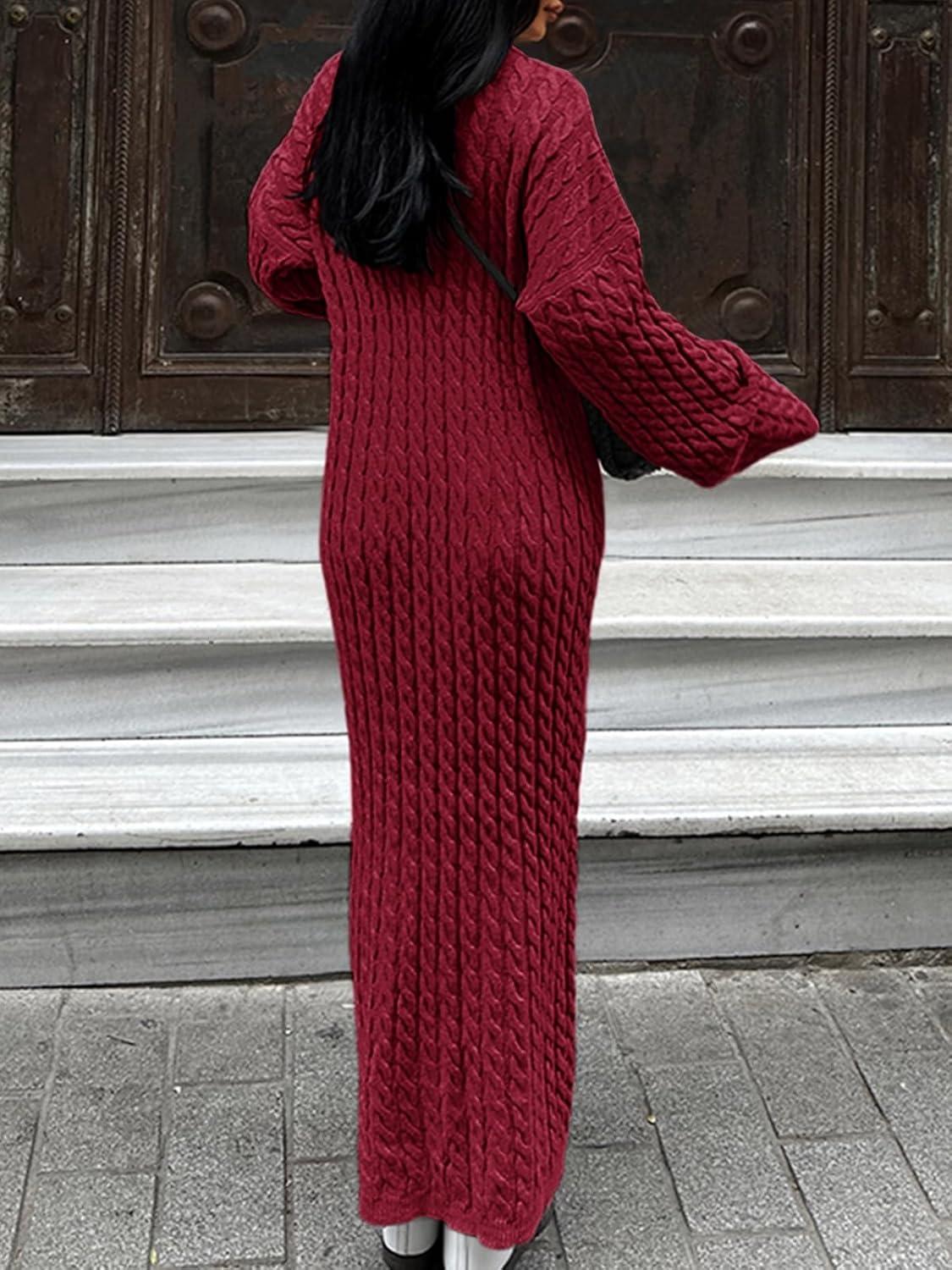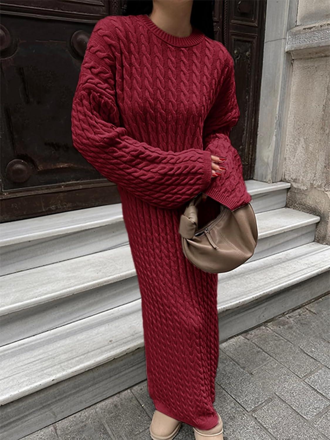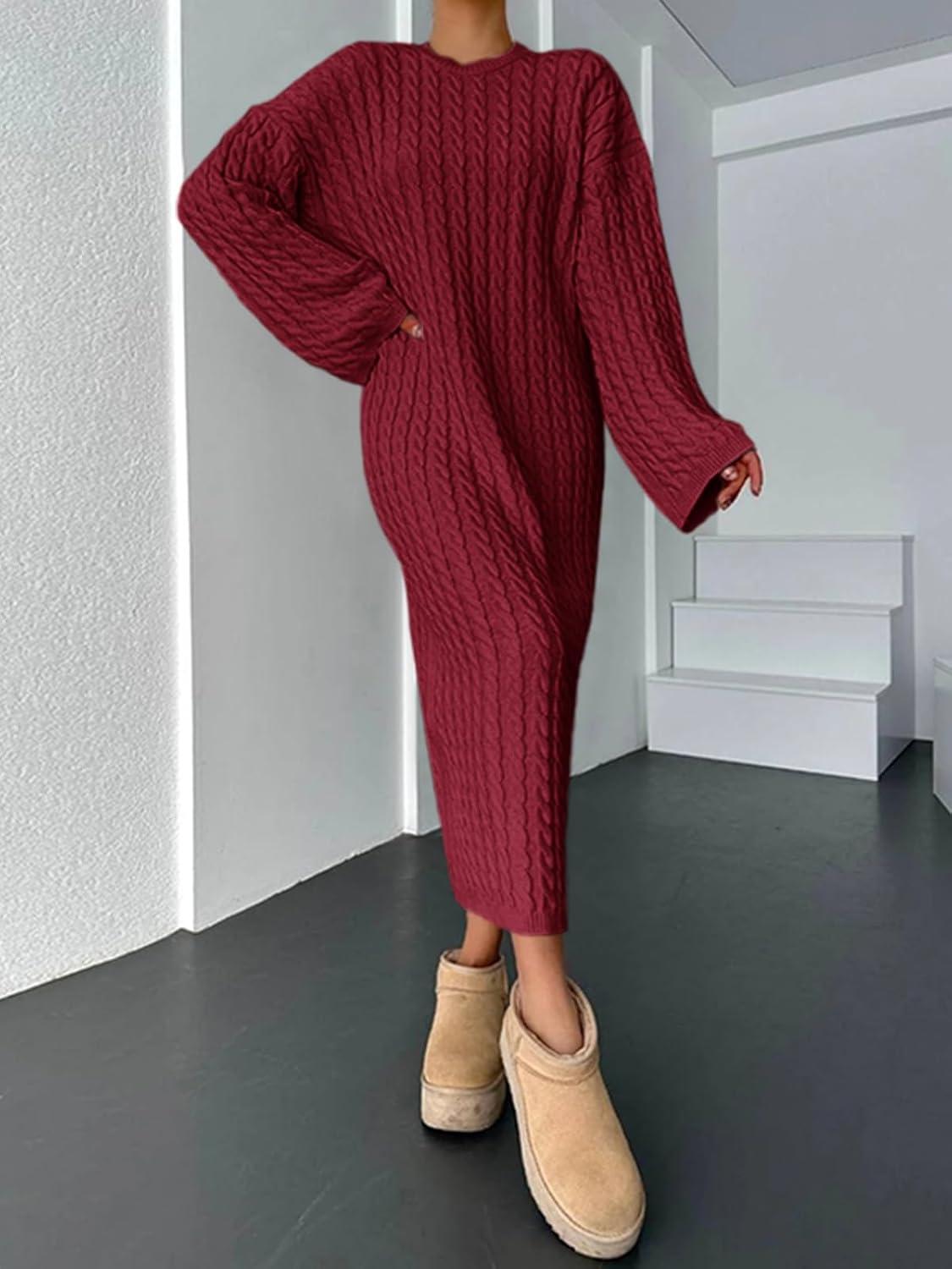 Saodimallsu Womens Oversized Cable Knit Sweater Dress Drop Shoulder Long Sleeve Loose Fall Midi Pullover Sweater Dresses(Burgundy)