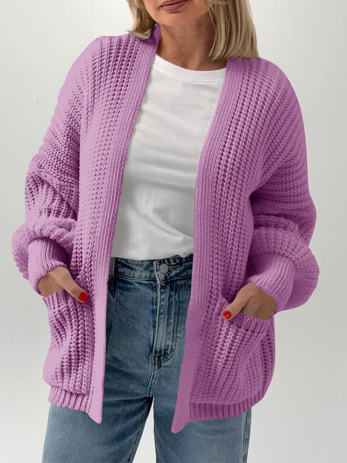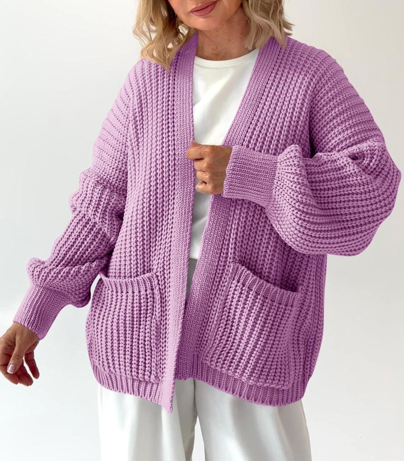 Saodimallsu Womens Oversized Cardigan Ribbed Chunky Knit Long Lantern Sleeve Open Front Fall Sweater Coats(Purple)