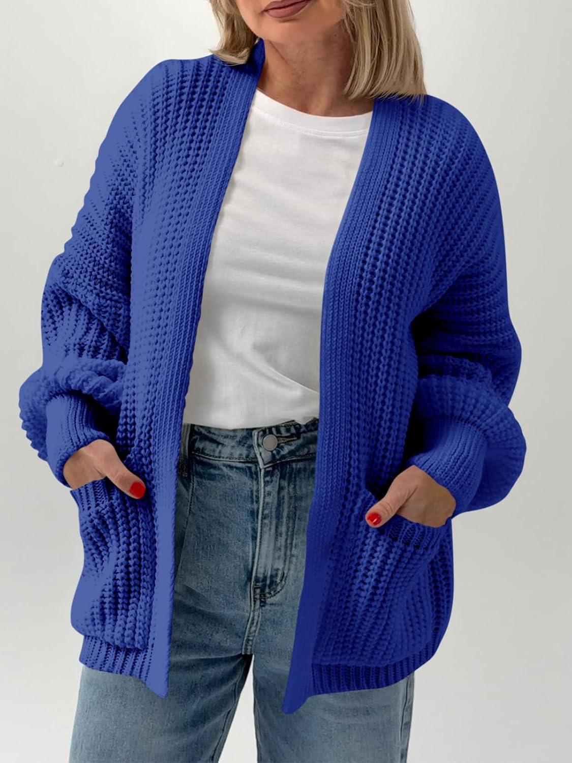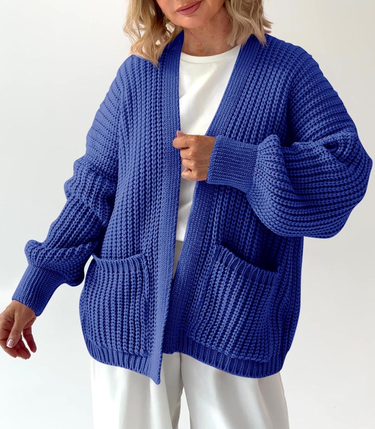 Saodimallsu Womens Oversized Cardigan Ribbed Chunky Knit Long Lantern Sleeve Open Front Fall Sweater Coats(Royal Blue)