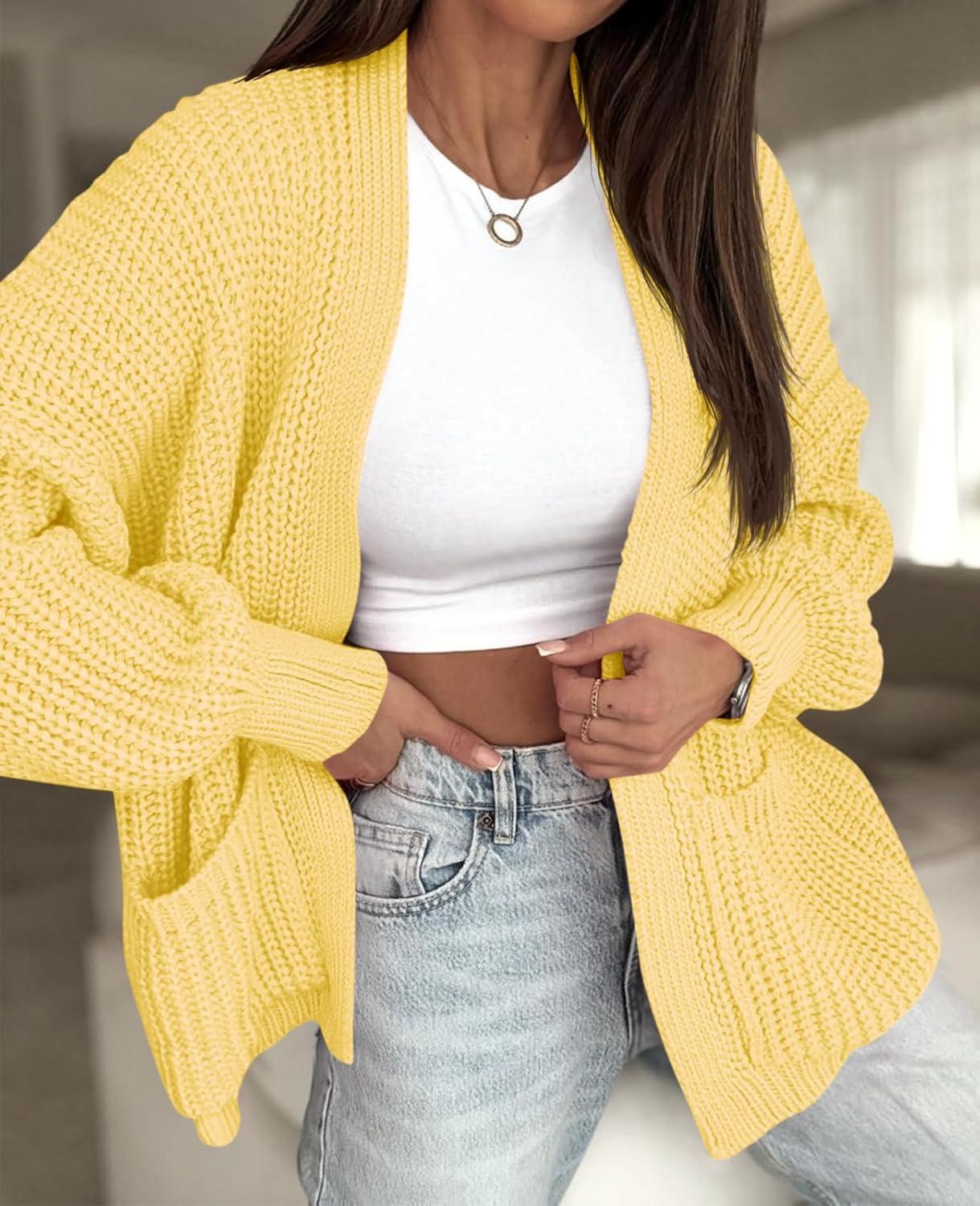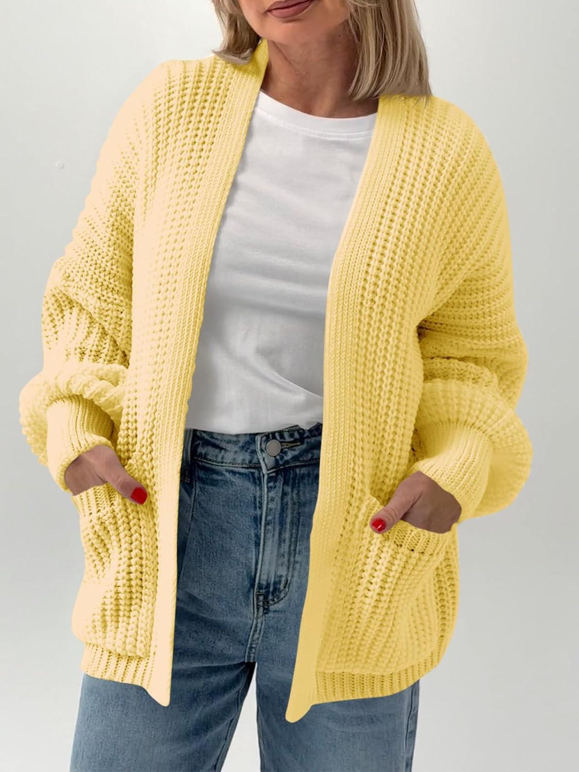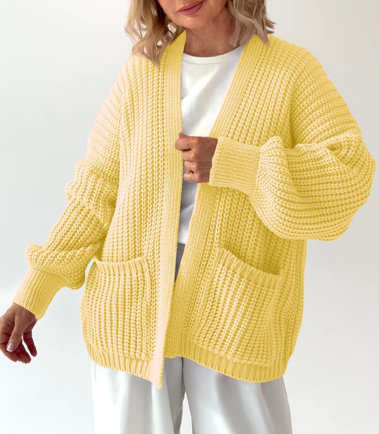 Saodimallsu Womens Oversized Cardigan Ribbed Chunky Knit Long Lantern Sleeve Open Front Fall Sweater Coats(Yellow)