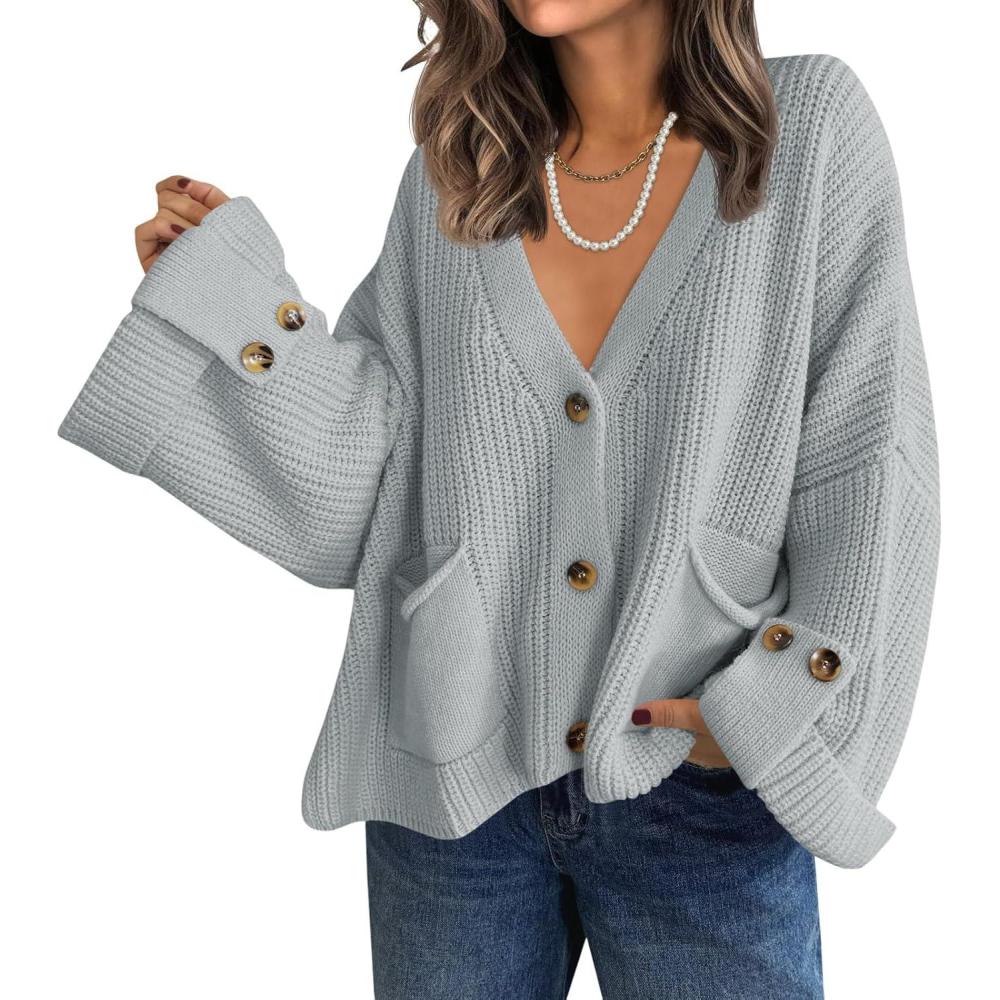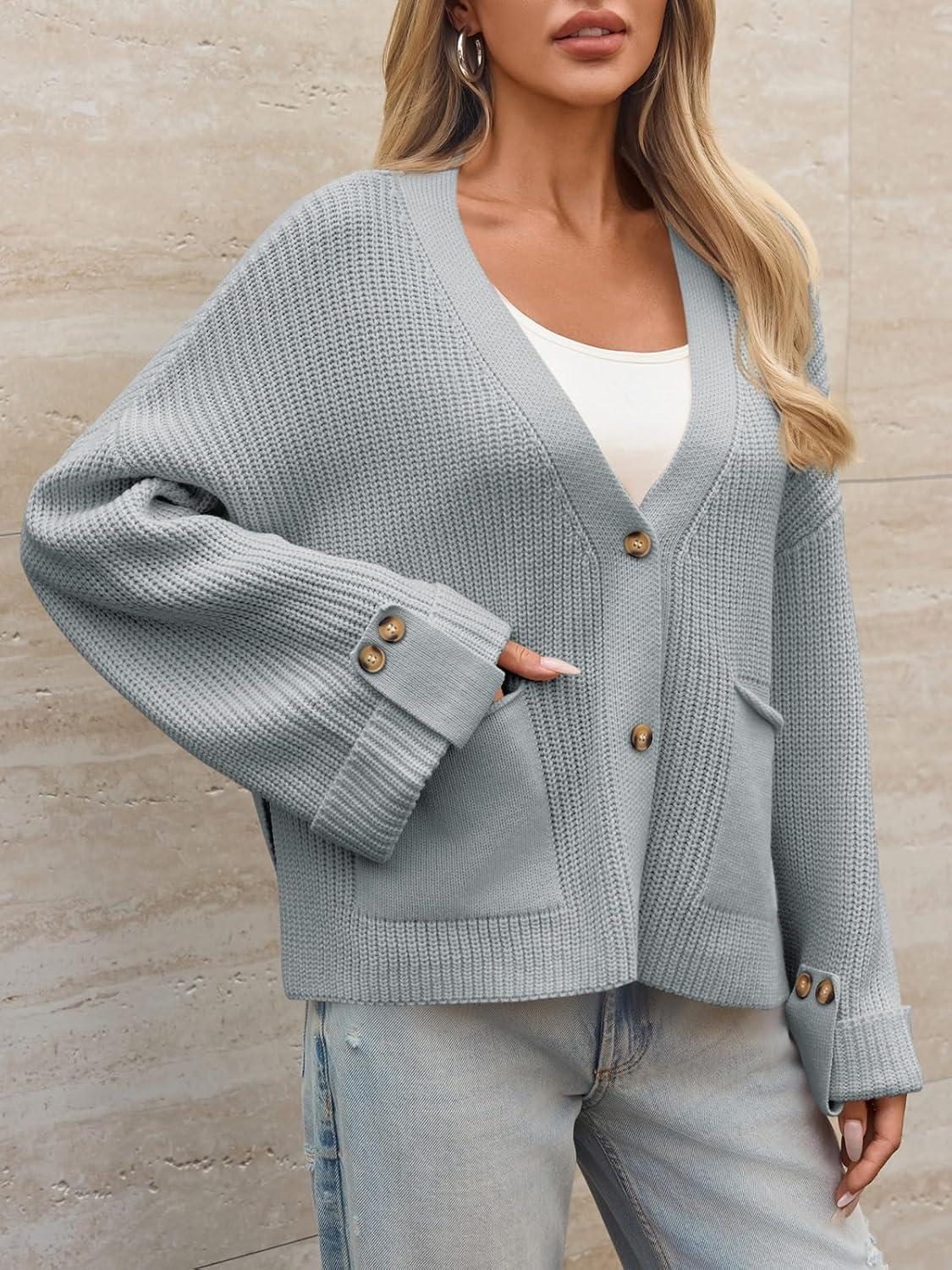 Saodimallsu Womens Oversized Cardigan Sweaters Button Up V Neck Long Sleeve Open Front Chunky Knit Sweater Coats(Grey)