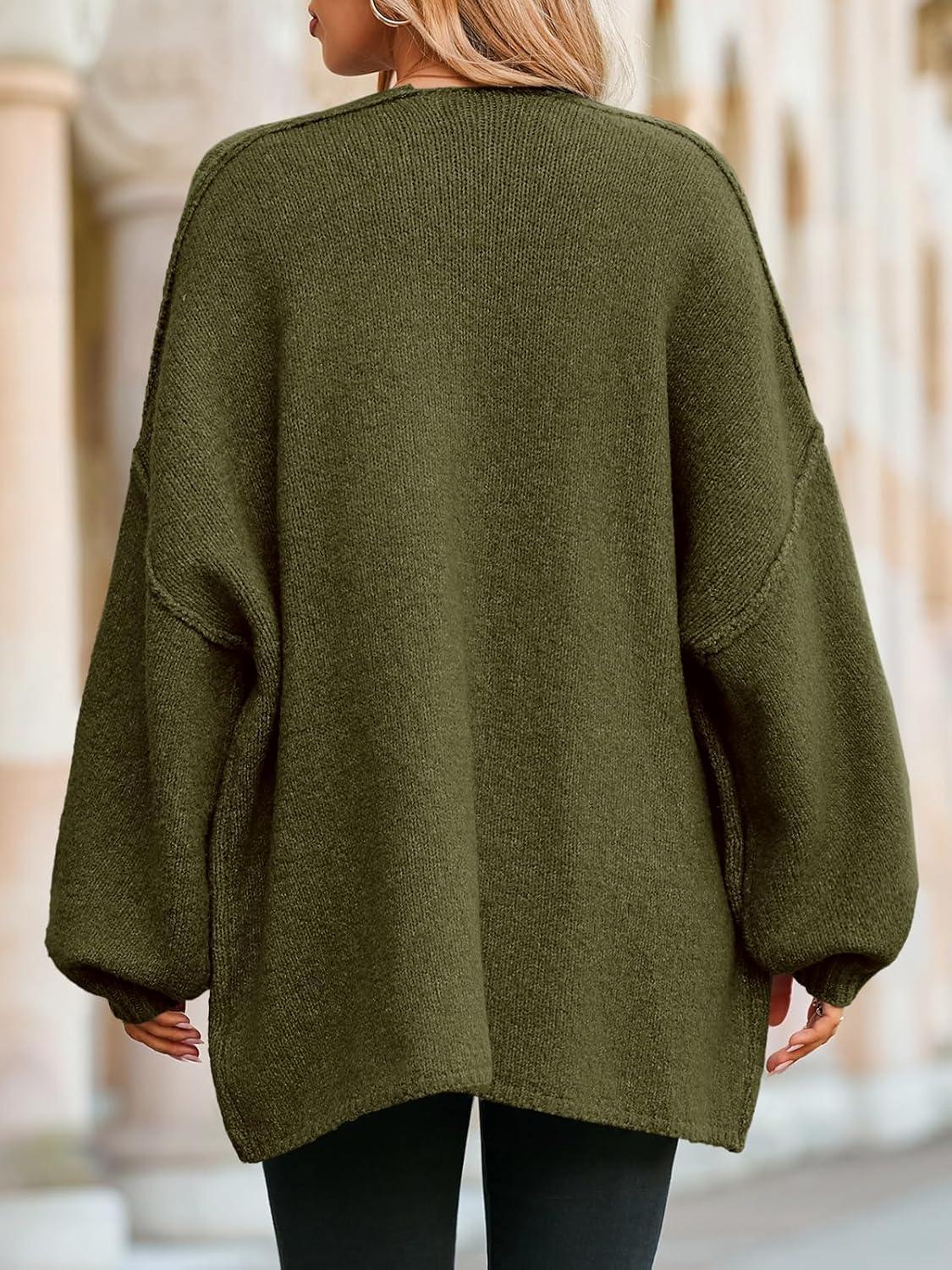Saodimallsu Womens Oversized Cardigan Sweaters Open Front Chunky Knit Casual Long Lantern Sleeve Fall Sweater Coats(Army Green)