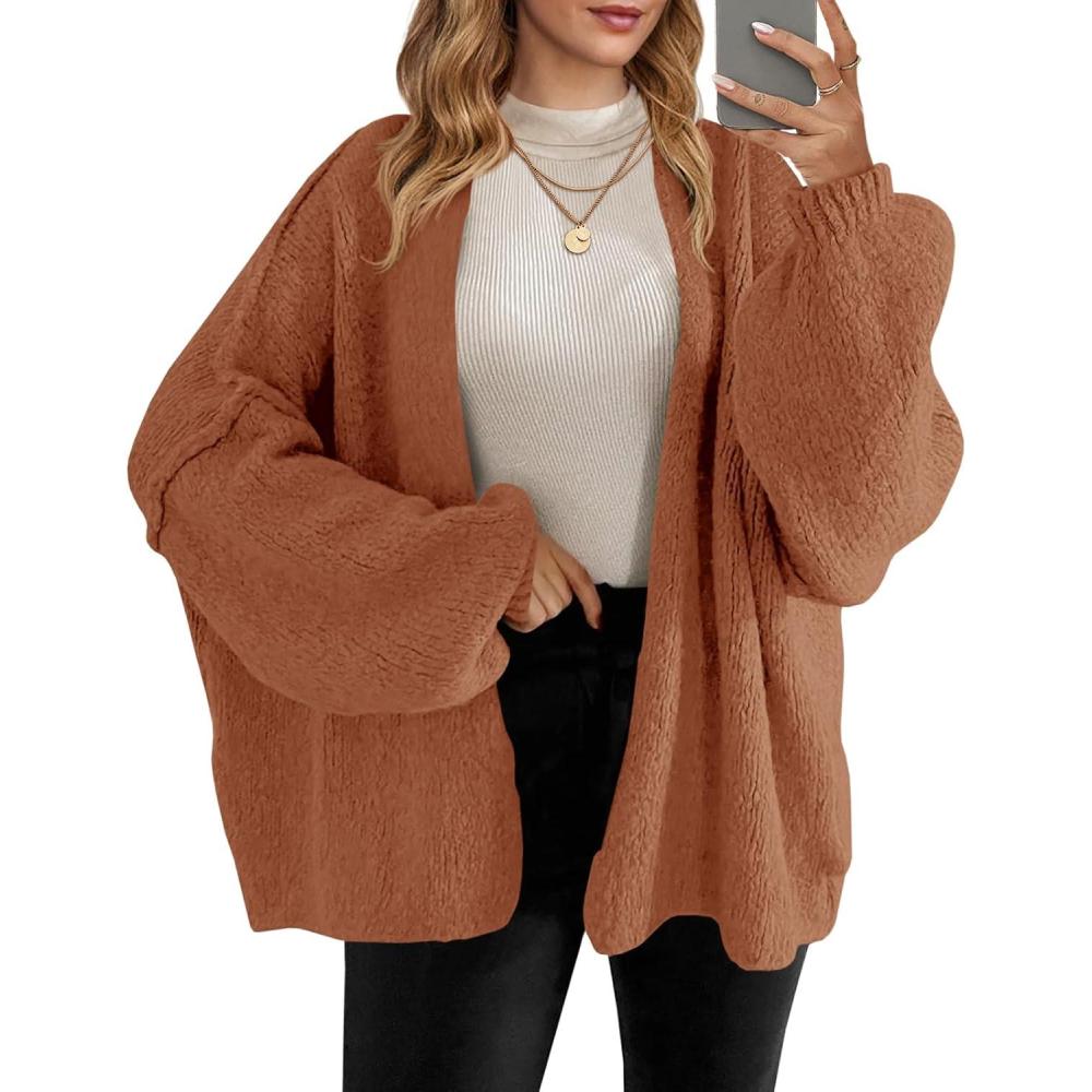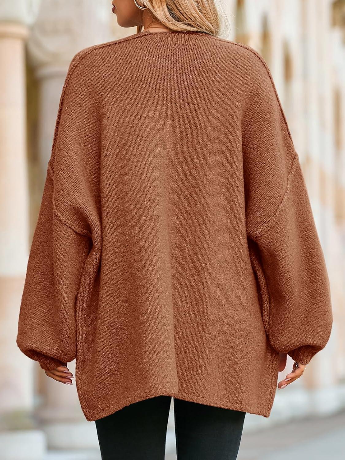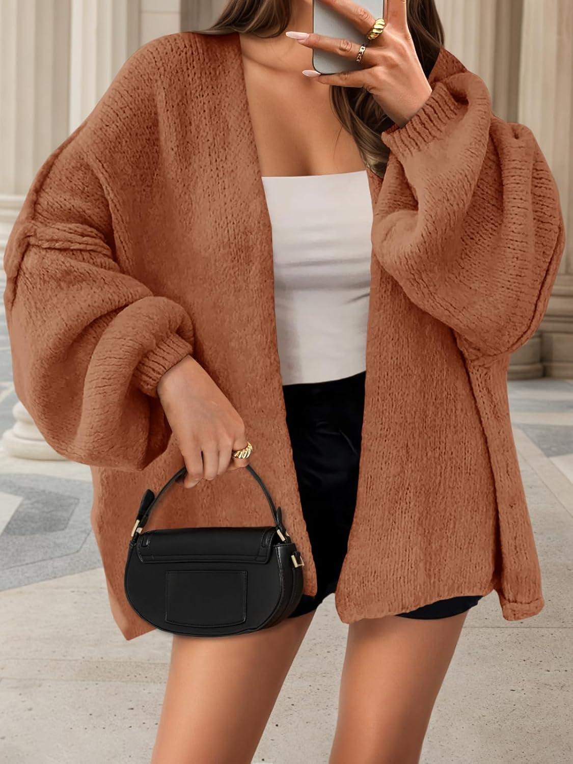 Saodimallsu Womens Oversized Cardigan Sweaters Open Front Chunky Knit Casual Long Lantern Sleeve Fall Sweater Coats(Brick Red)