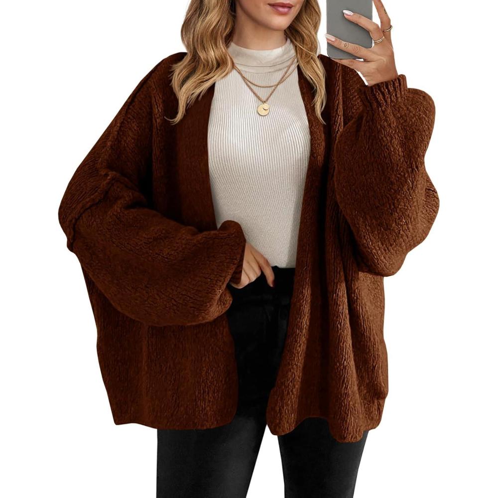 Saodimallsu Womens Oversized Cardigan Sweaters Open Front Chunky Knit Casual Long Lantern Sleeve Fall Sweater Coats(Brown)