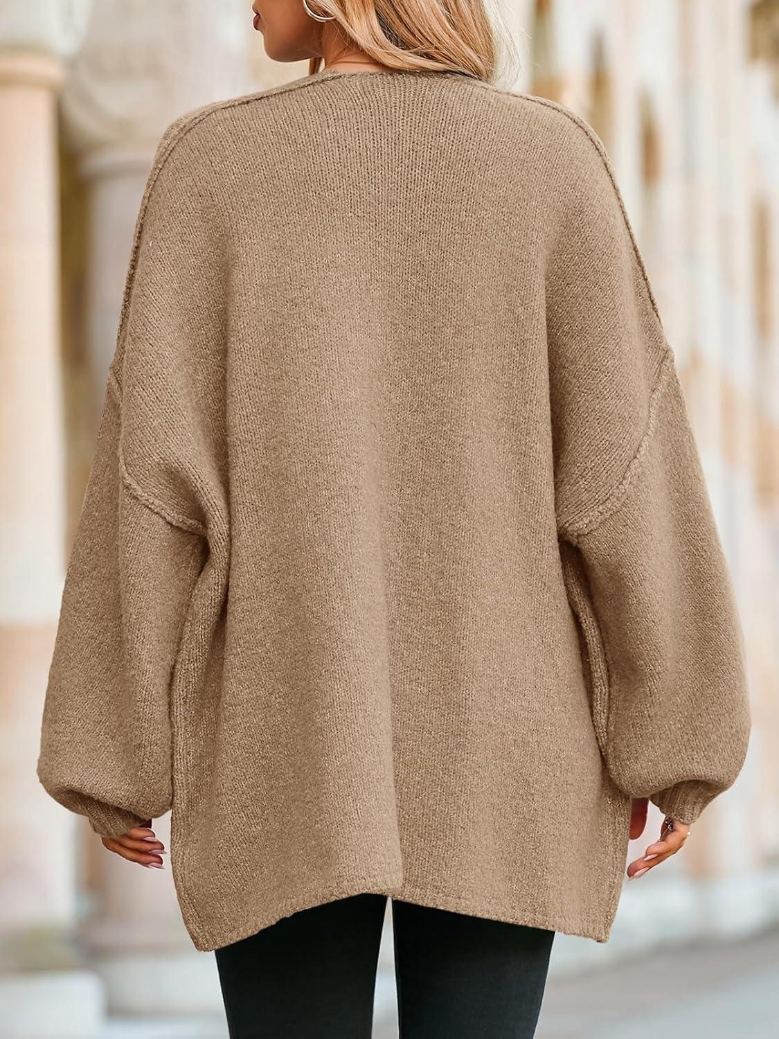 Saodimallsu Womens Oversized Cardigan Sweaters Open Front Chunky Knit Casual Long Lantern Sleeve Fall Sweater Coats(Camel)