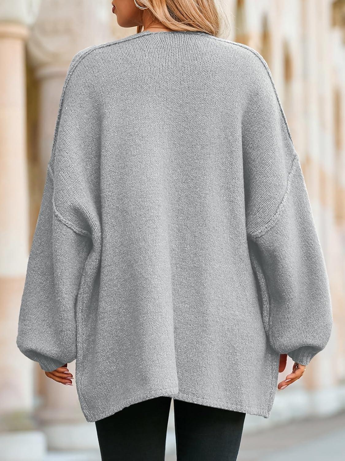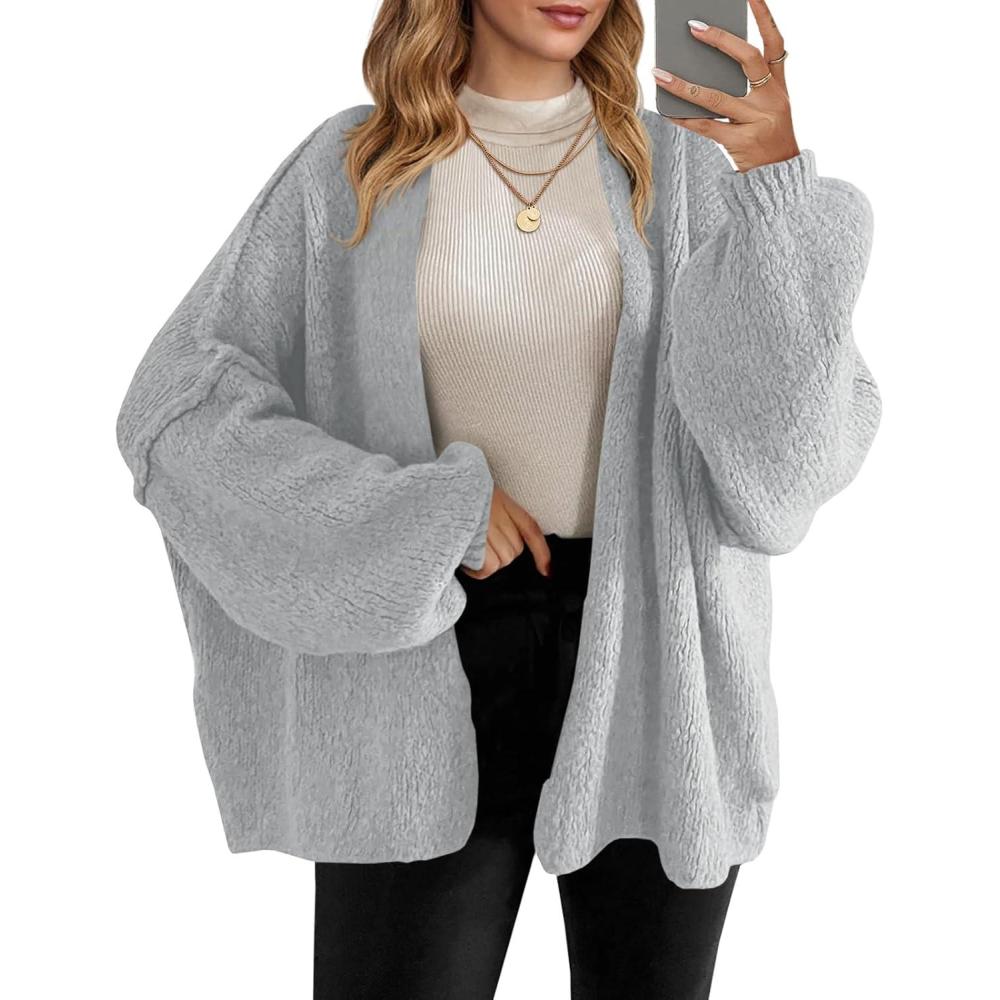 Saodimallsu Womens Oversized Cardigan Sweaters Open Front Chunky Knit Casual Long Lantern Sleeve Fall Sweater Coats(Gray)