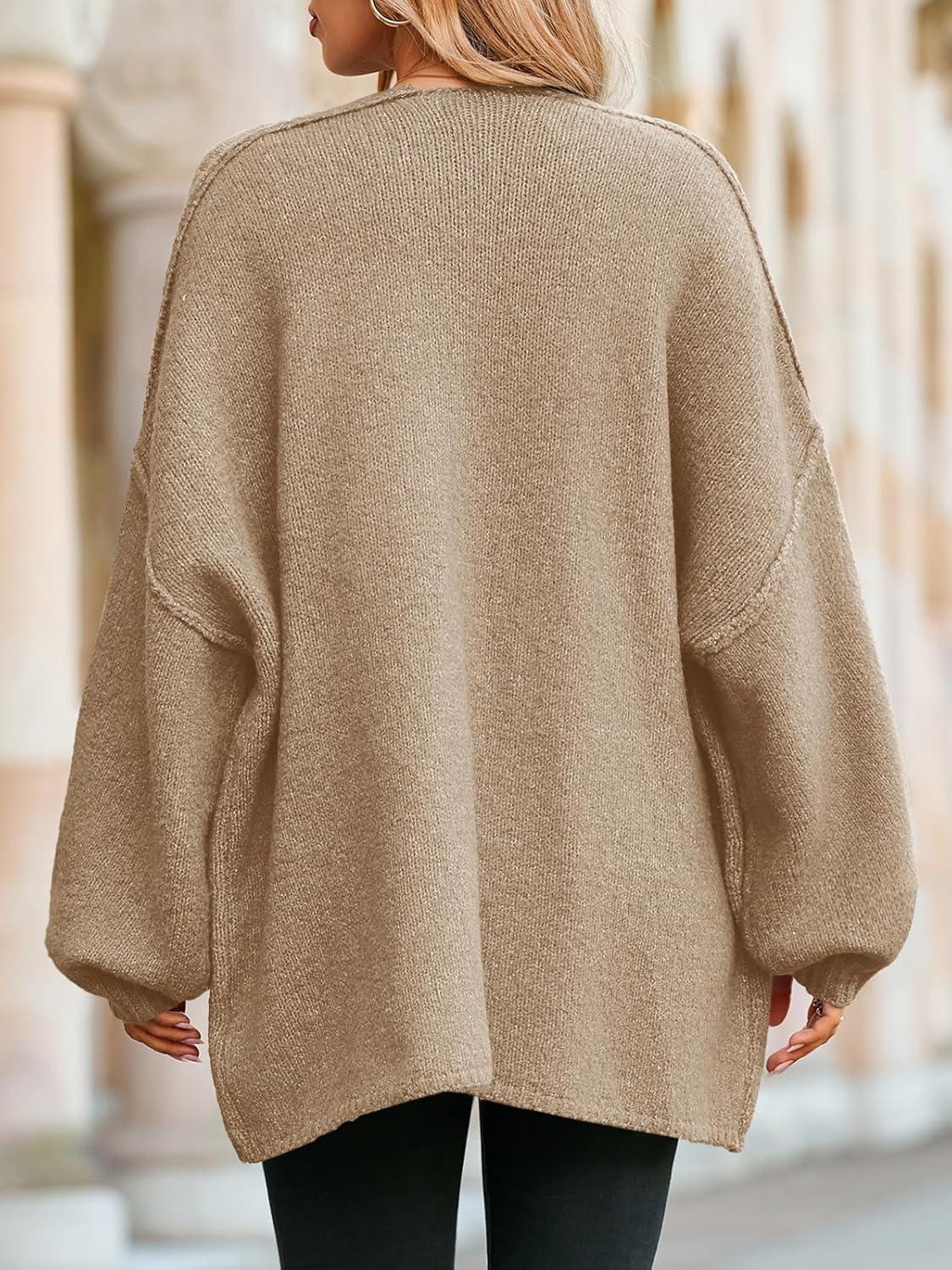 Saodimallsu Womens Oversized Cardigan Sweaters Open Front Chunky Knit Casual Long Lantern Sleeve Fall Sweater Coats(Khaki)