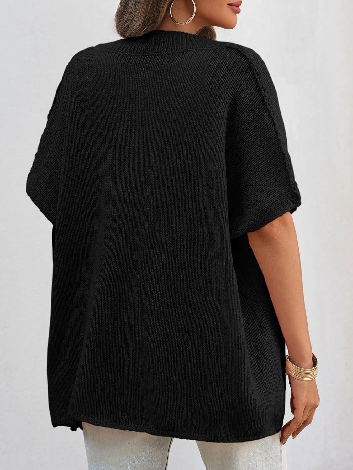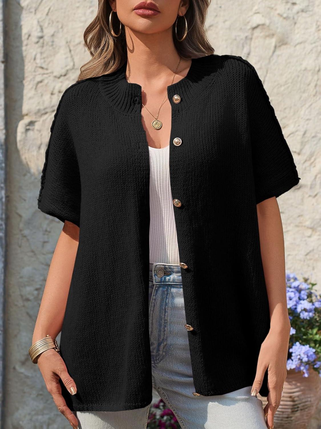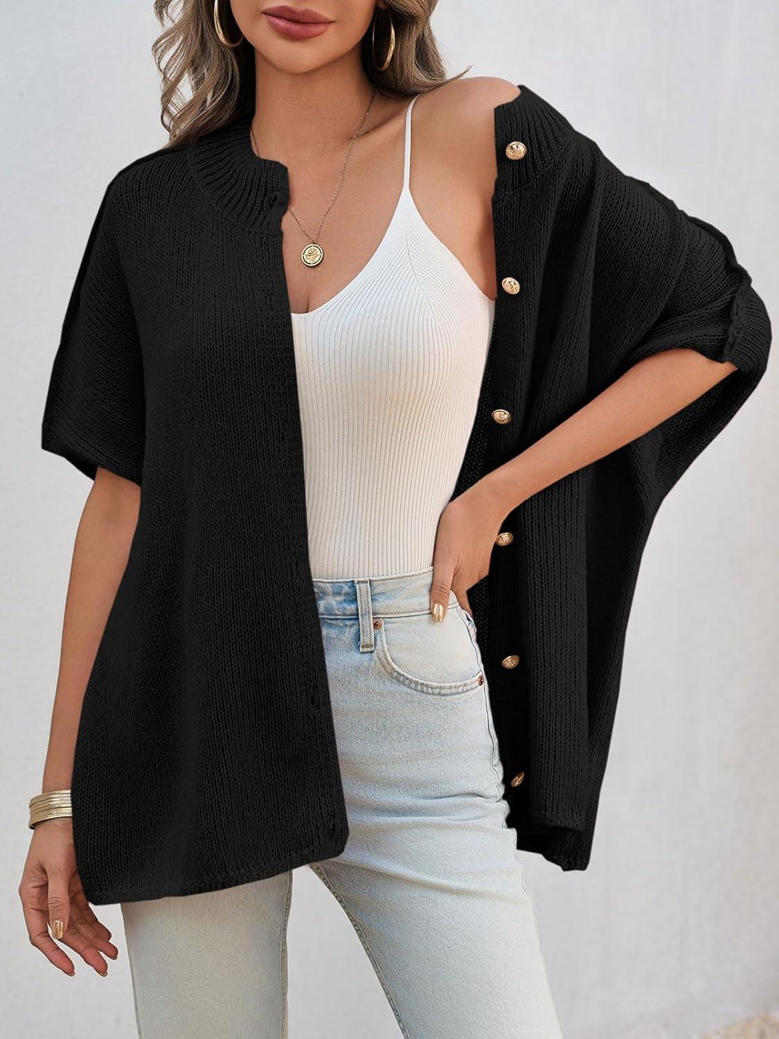 Saodimallsu Womens Oversized Cardigan Sweaters Short Sleeve Button Down Casual Lightweight Loose Knit Trendy Cardigans(Black)
